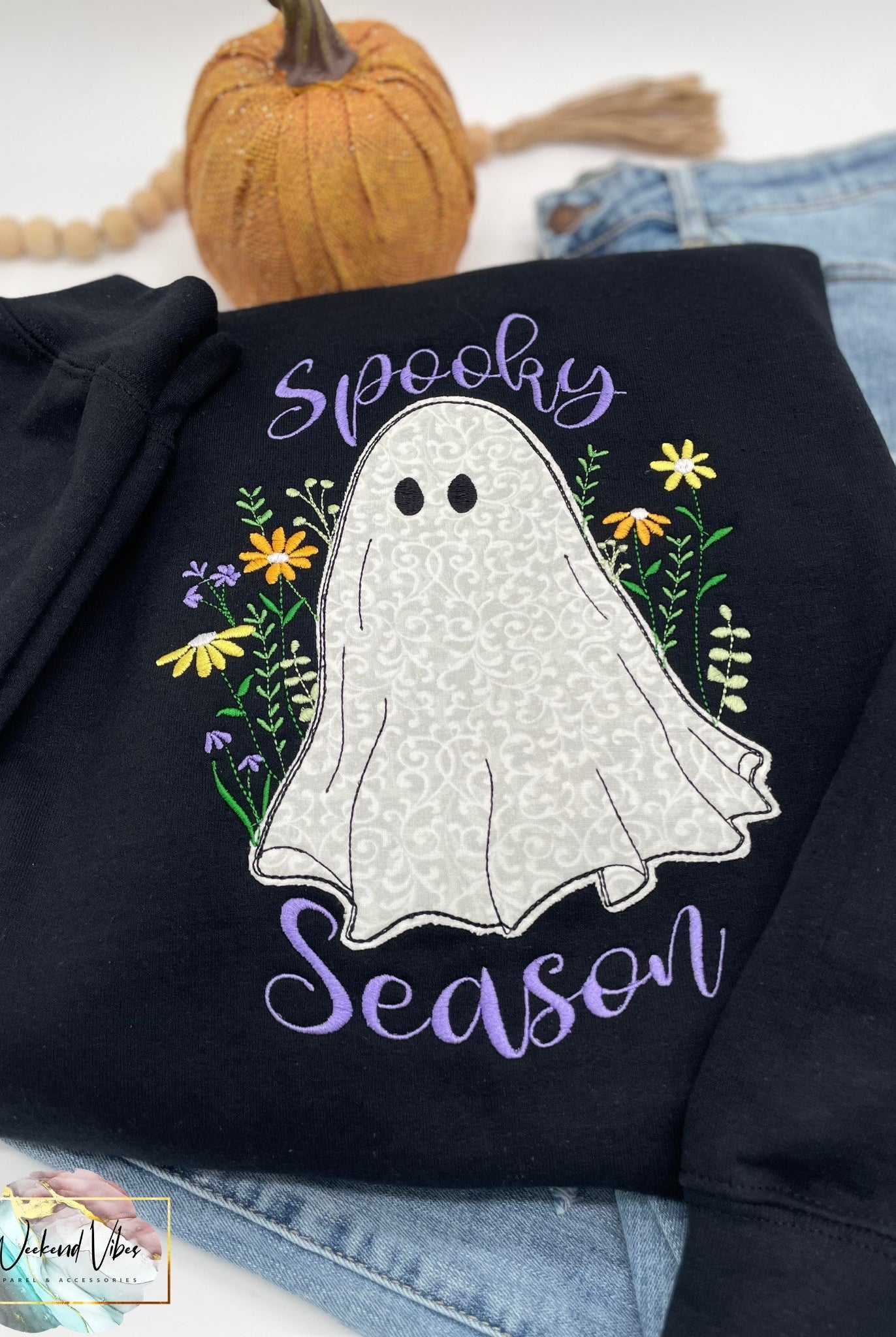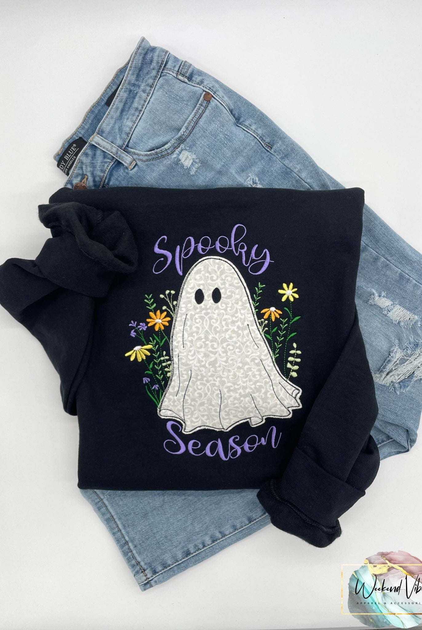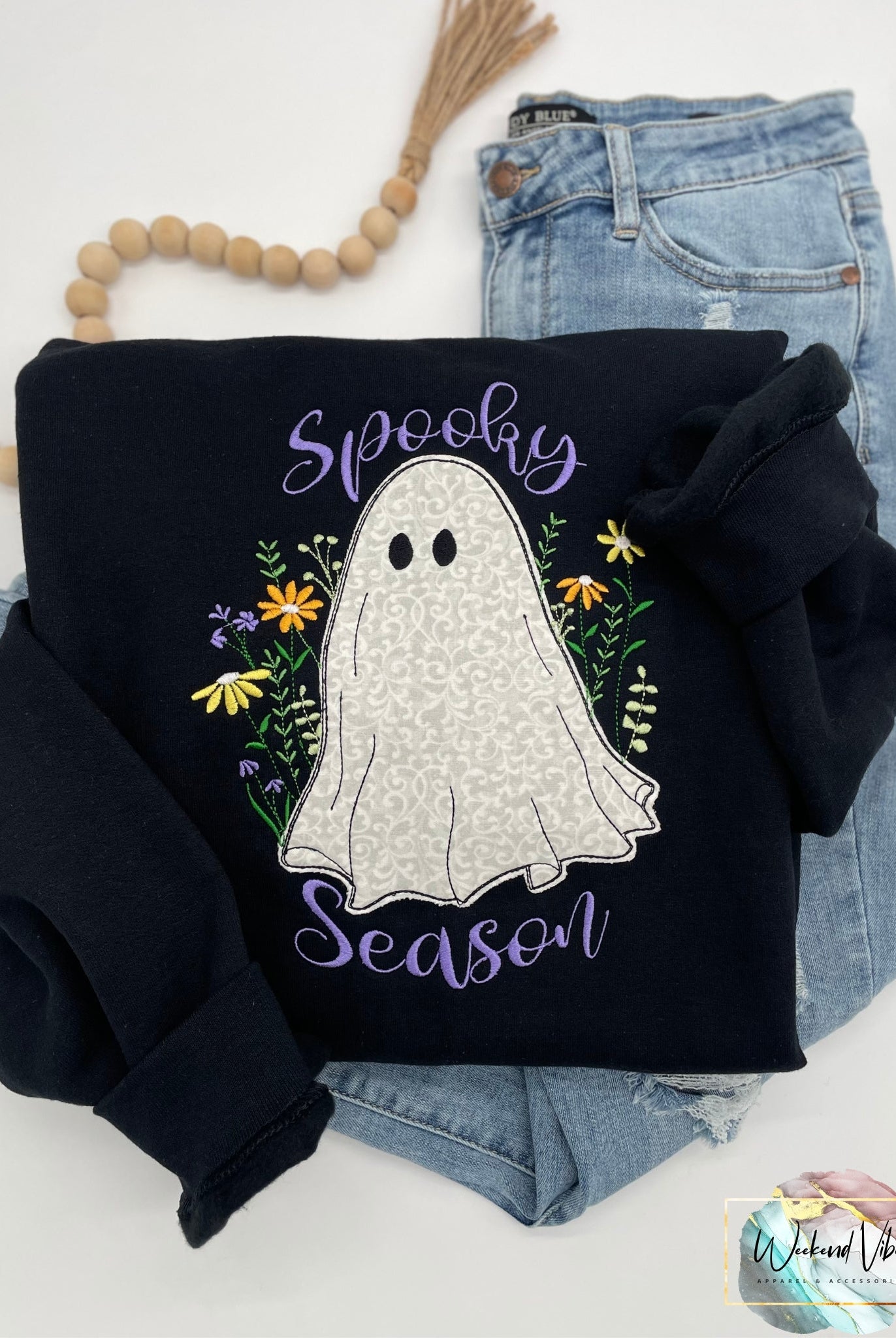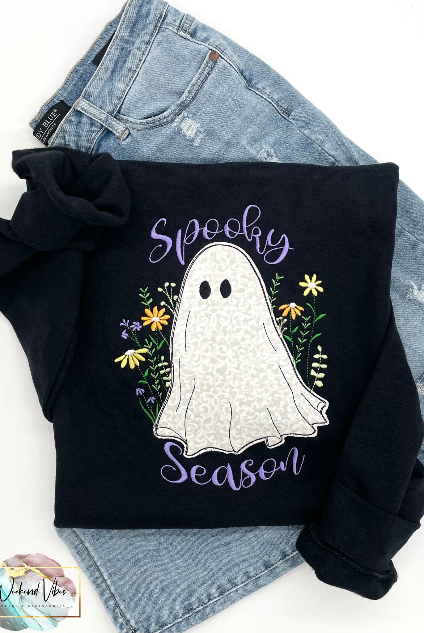 Spooky Season Embroidered Wildflowers Halloween Ghost Applique Sweatshirt