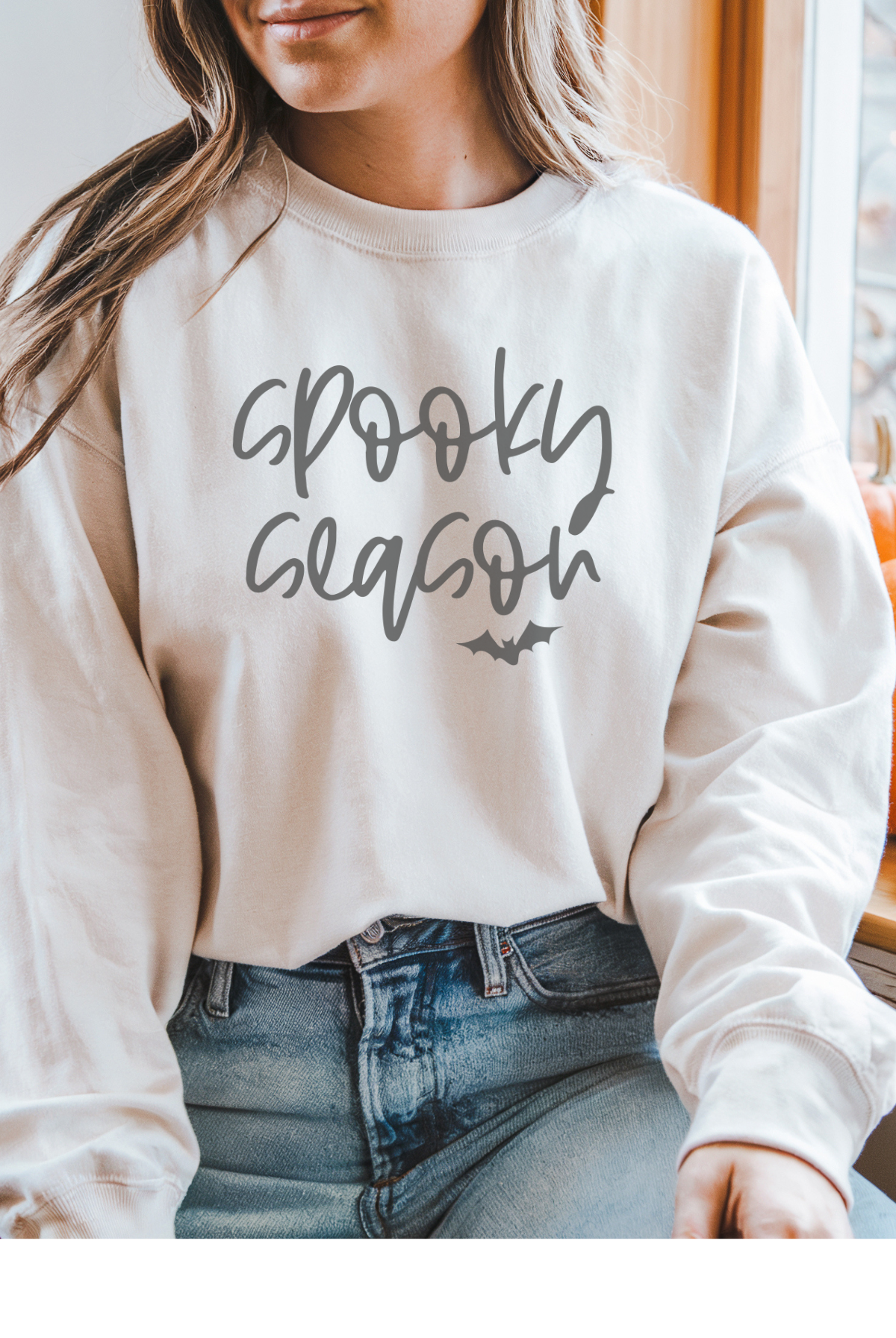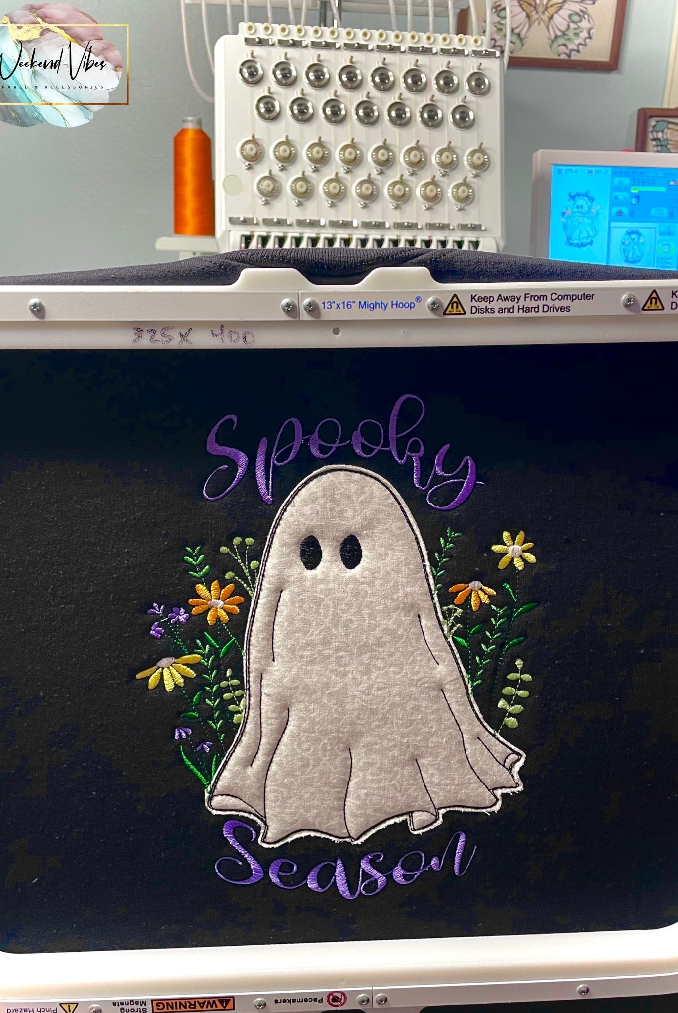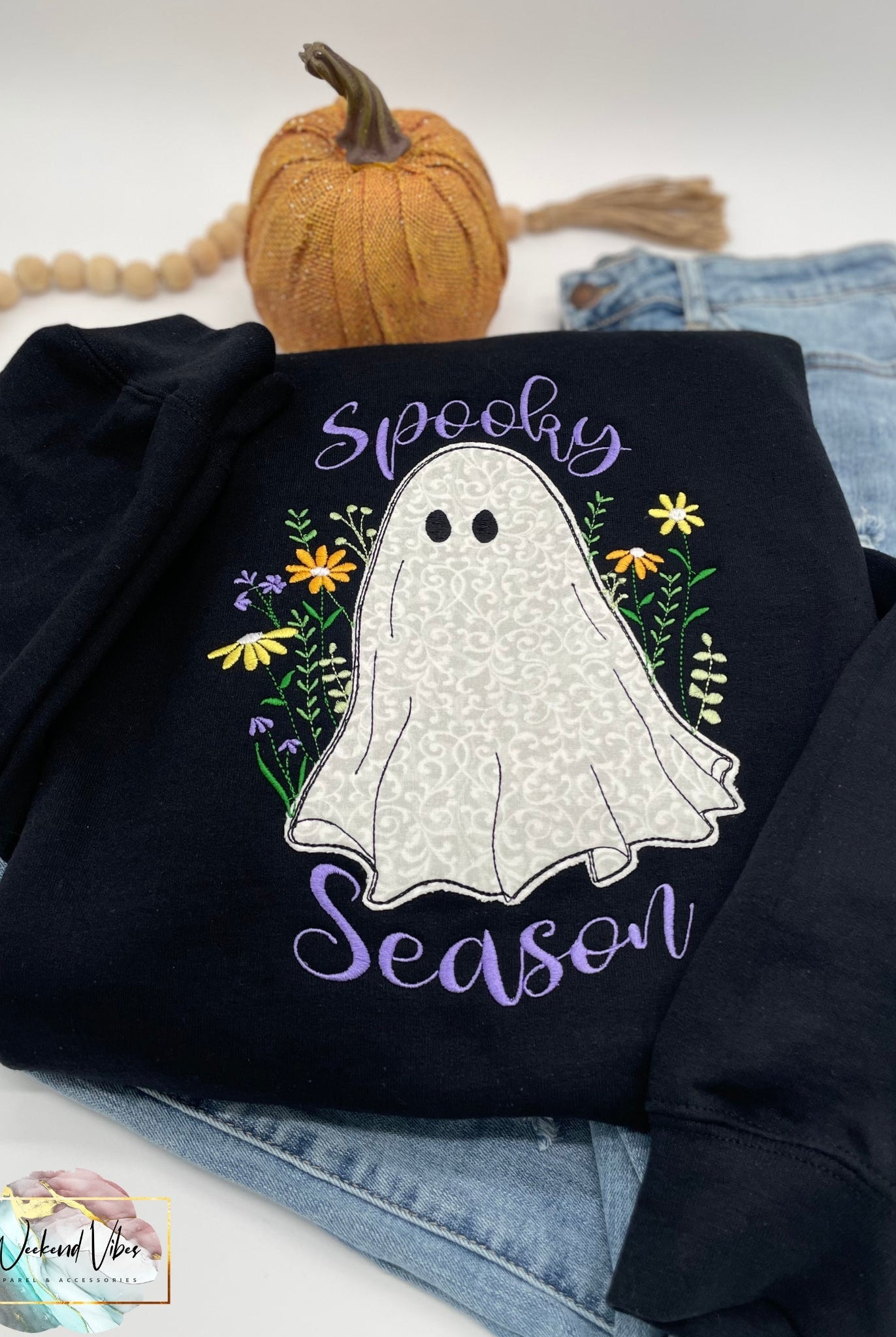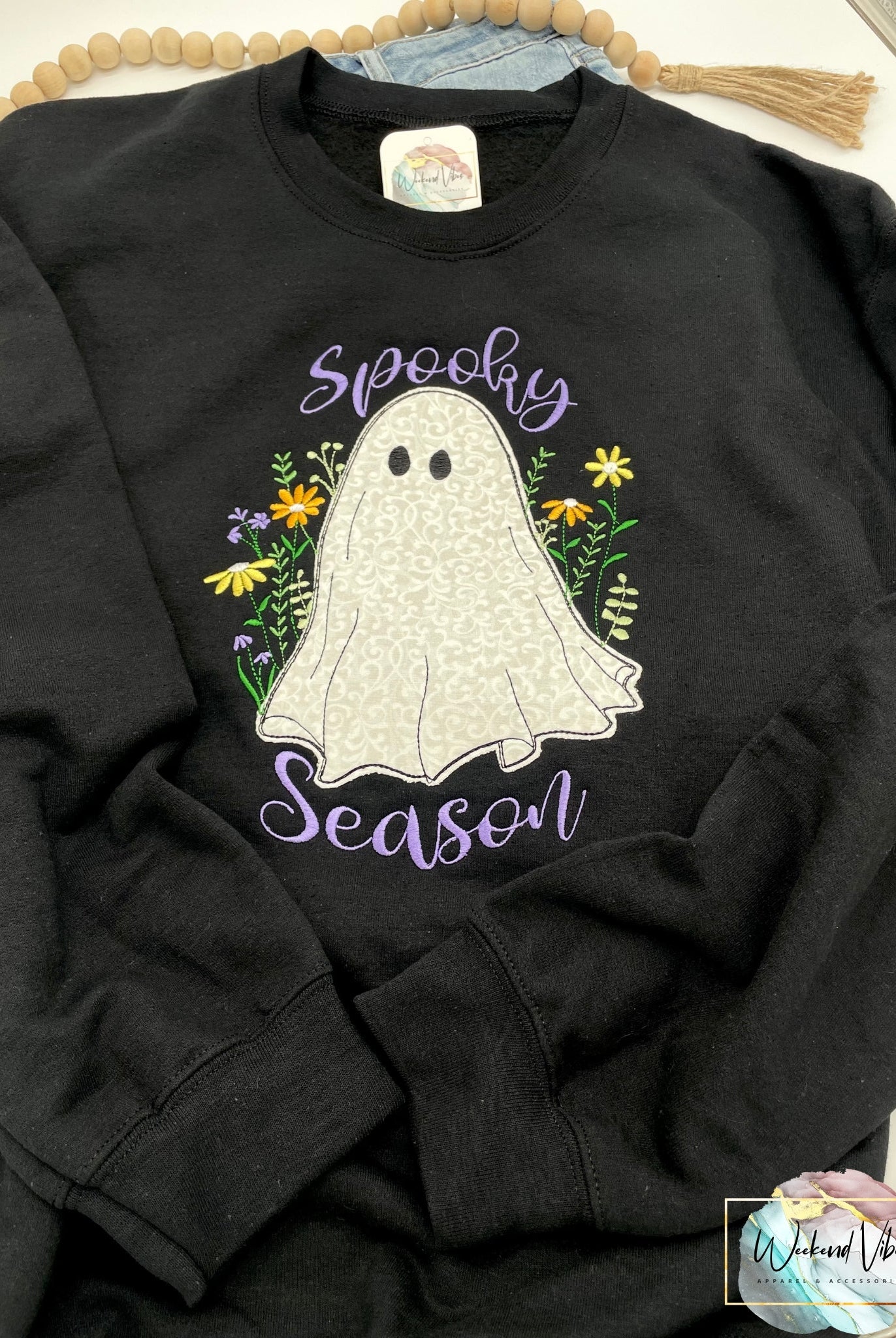 Spooky Season Embroidered Wildflowers Halloween Ghost Applique Sweatshirt