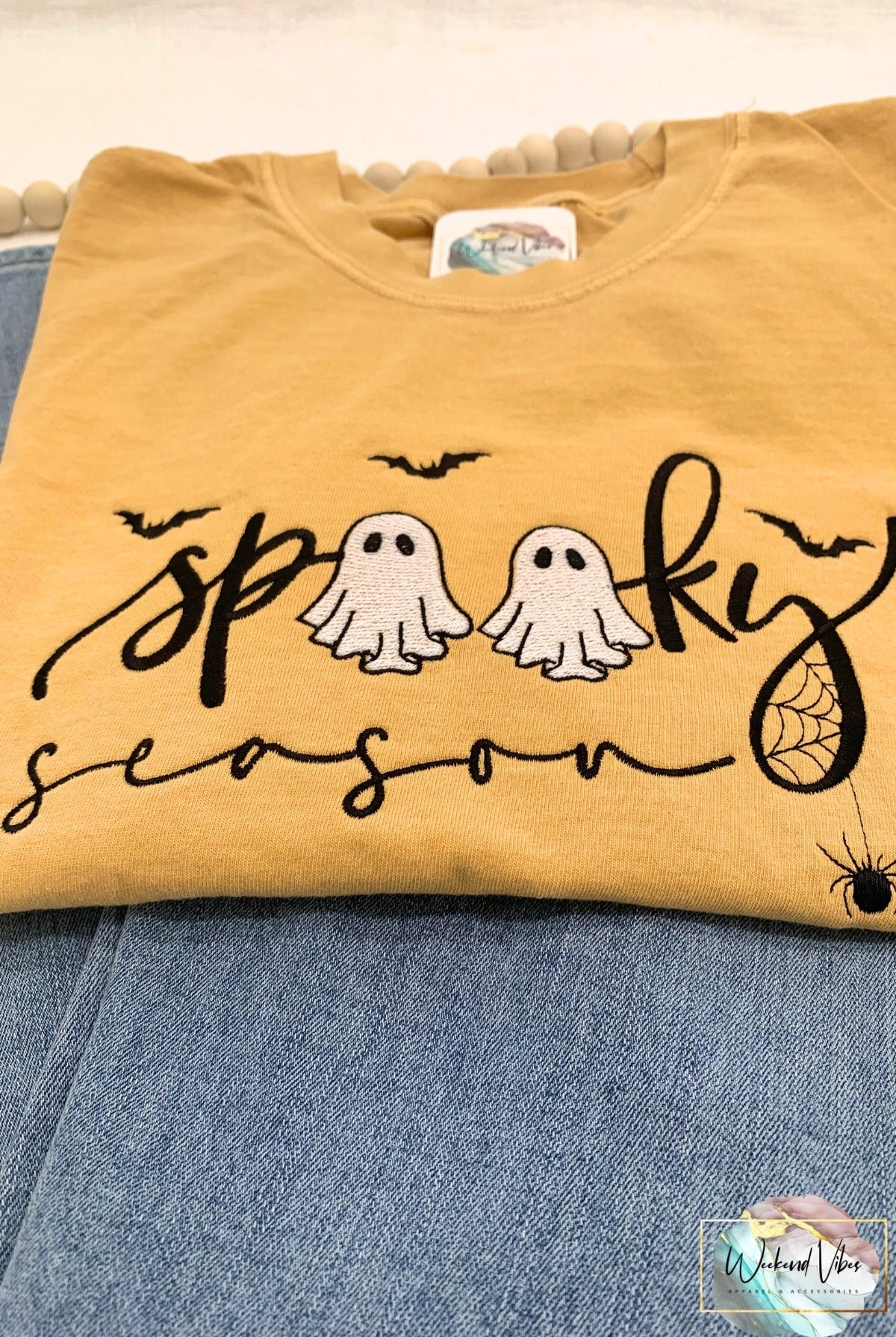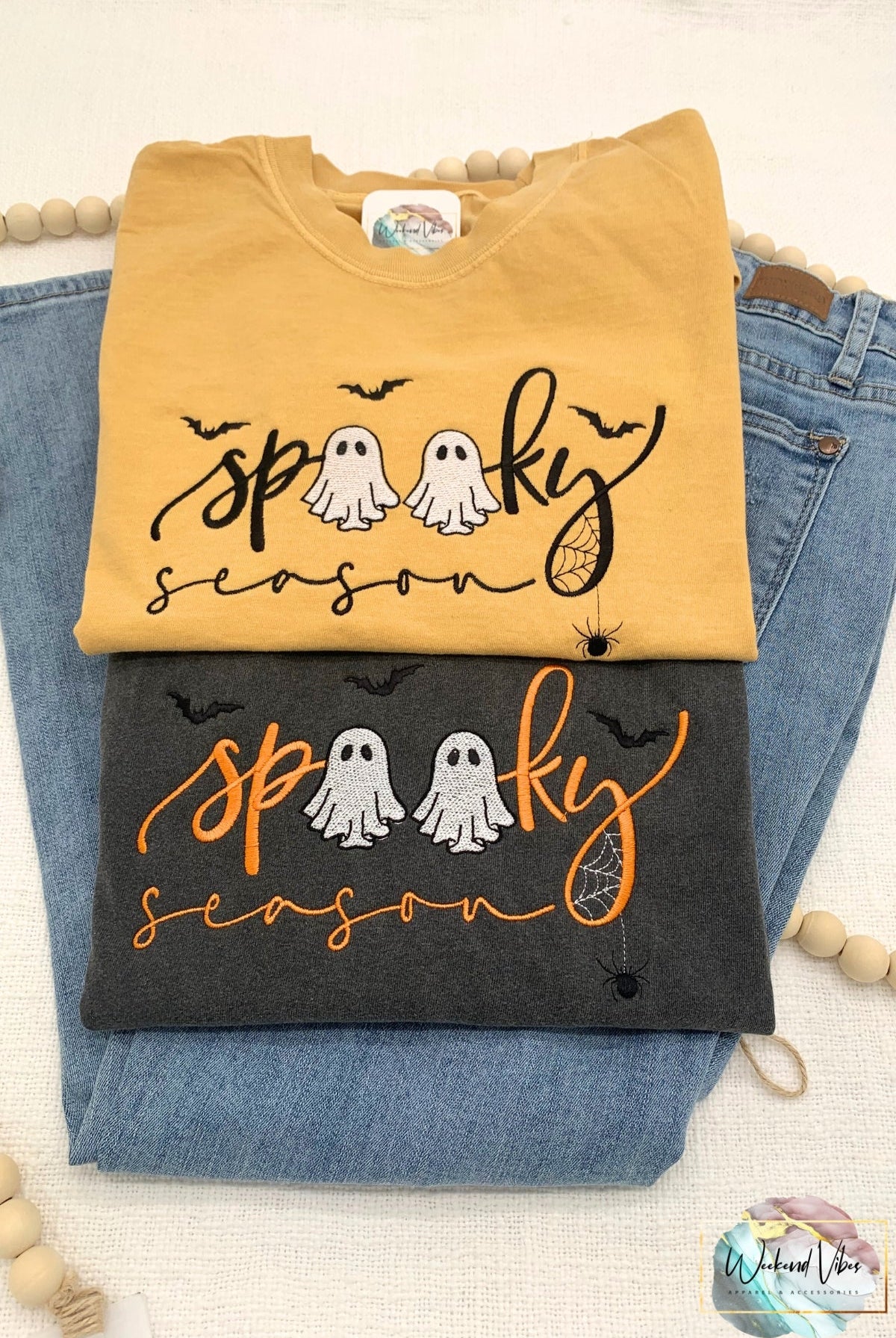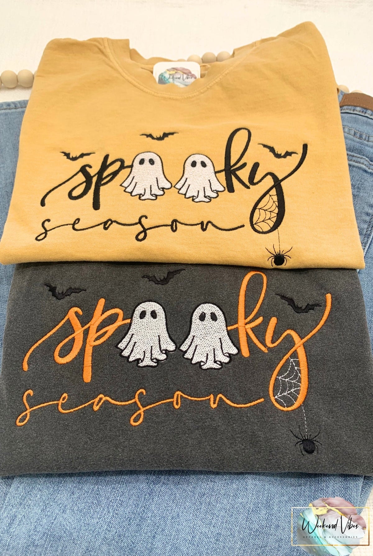 Embroidered Halloween Spooky Season T-Shirt on Comfort Colors®, Women's Ghost Tee