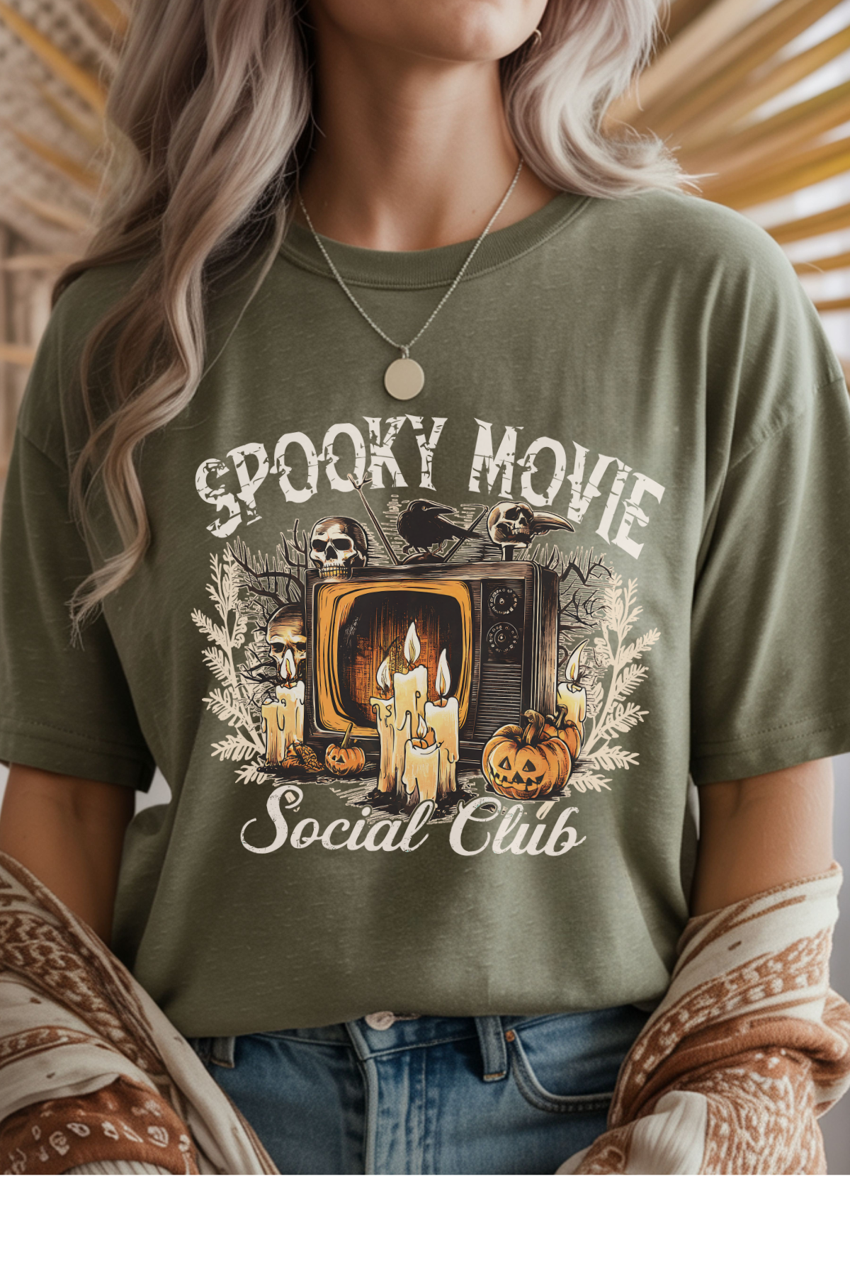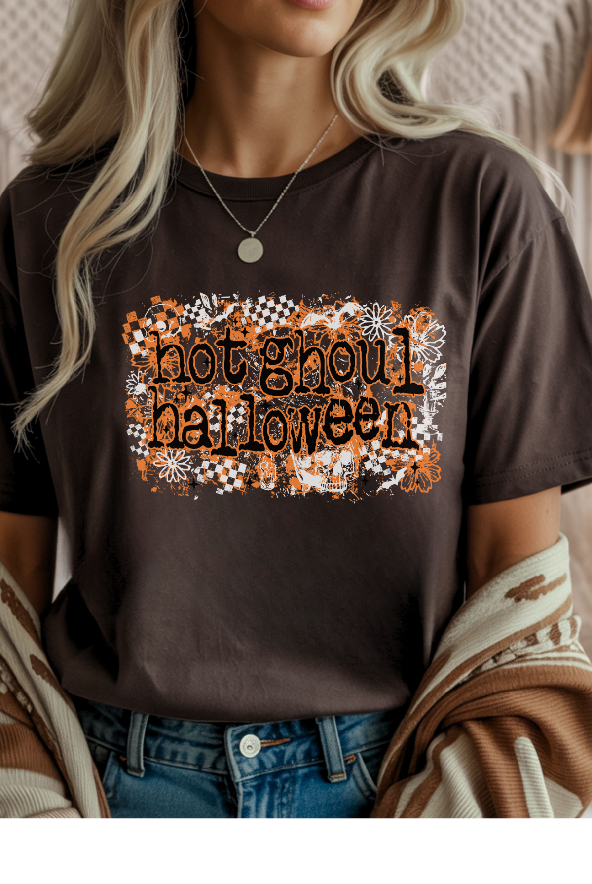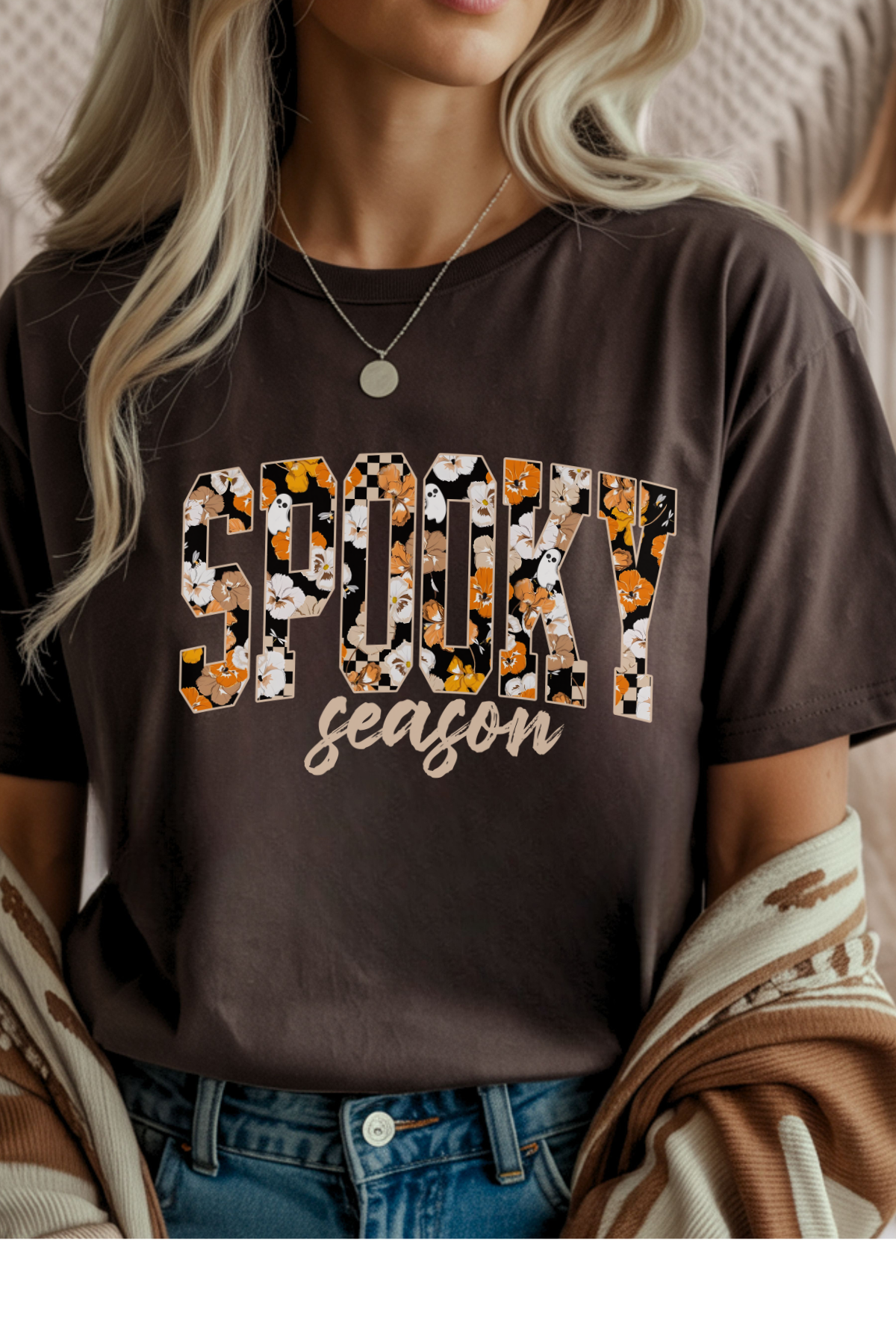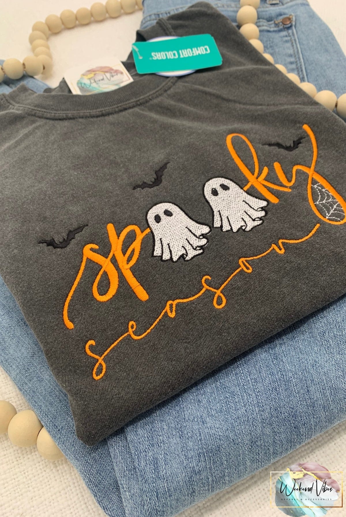 Embroidered Halloween Spooky Season T-Shirt on Comfort Colors®, Women's Ghost Tee
