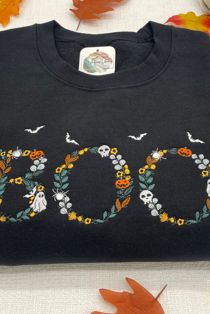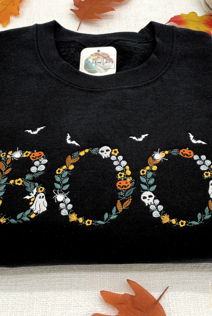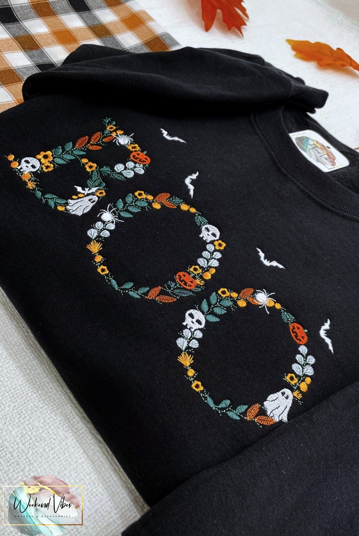 Embroidered Floral Boo Sweatshirt or Hoodie Sweatshirt