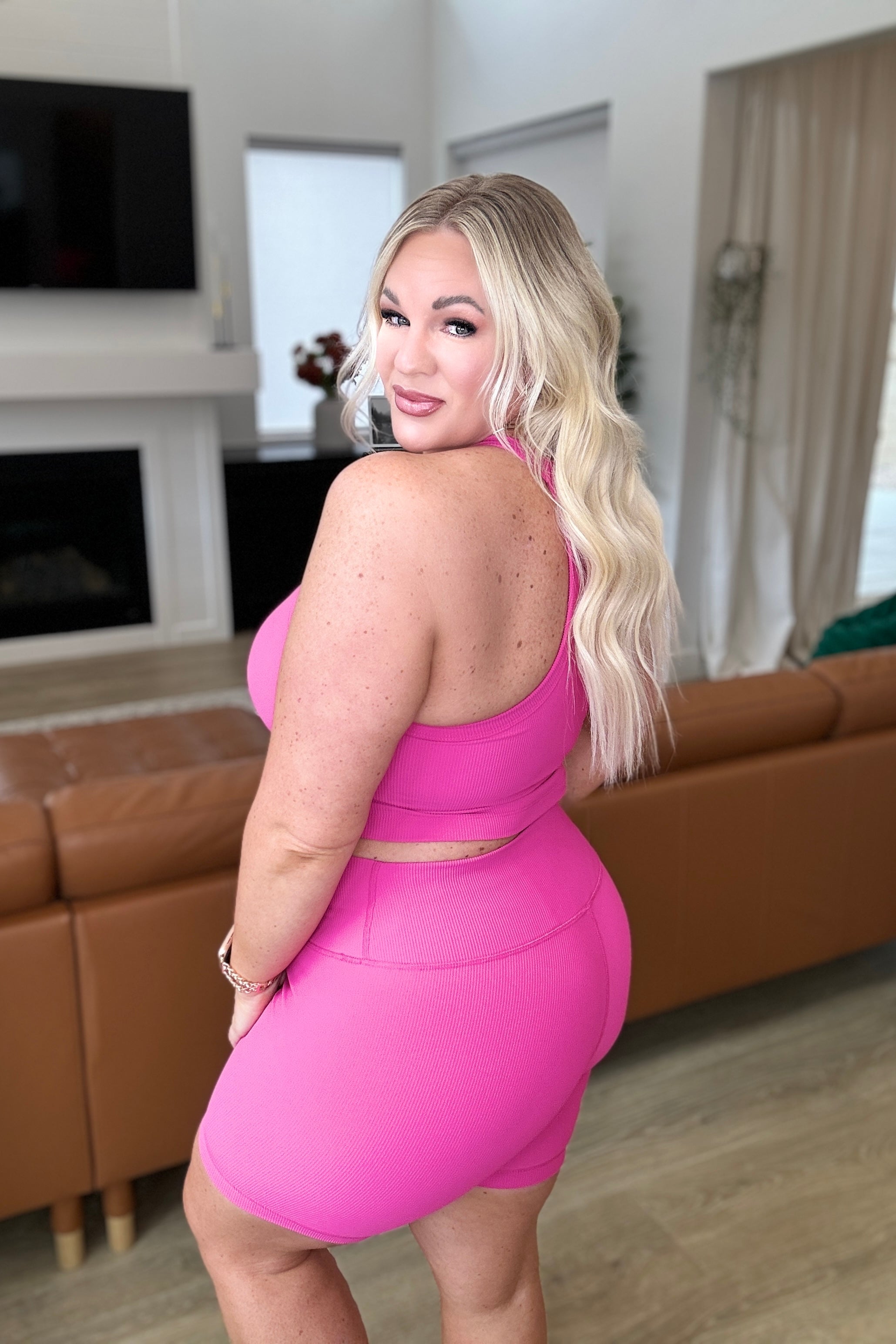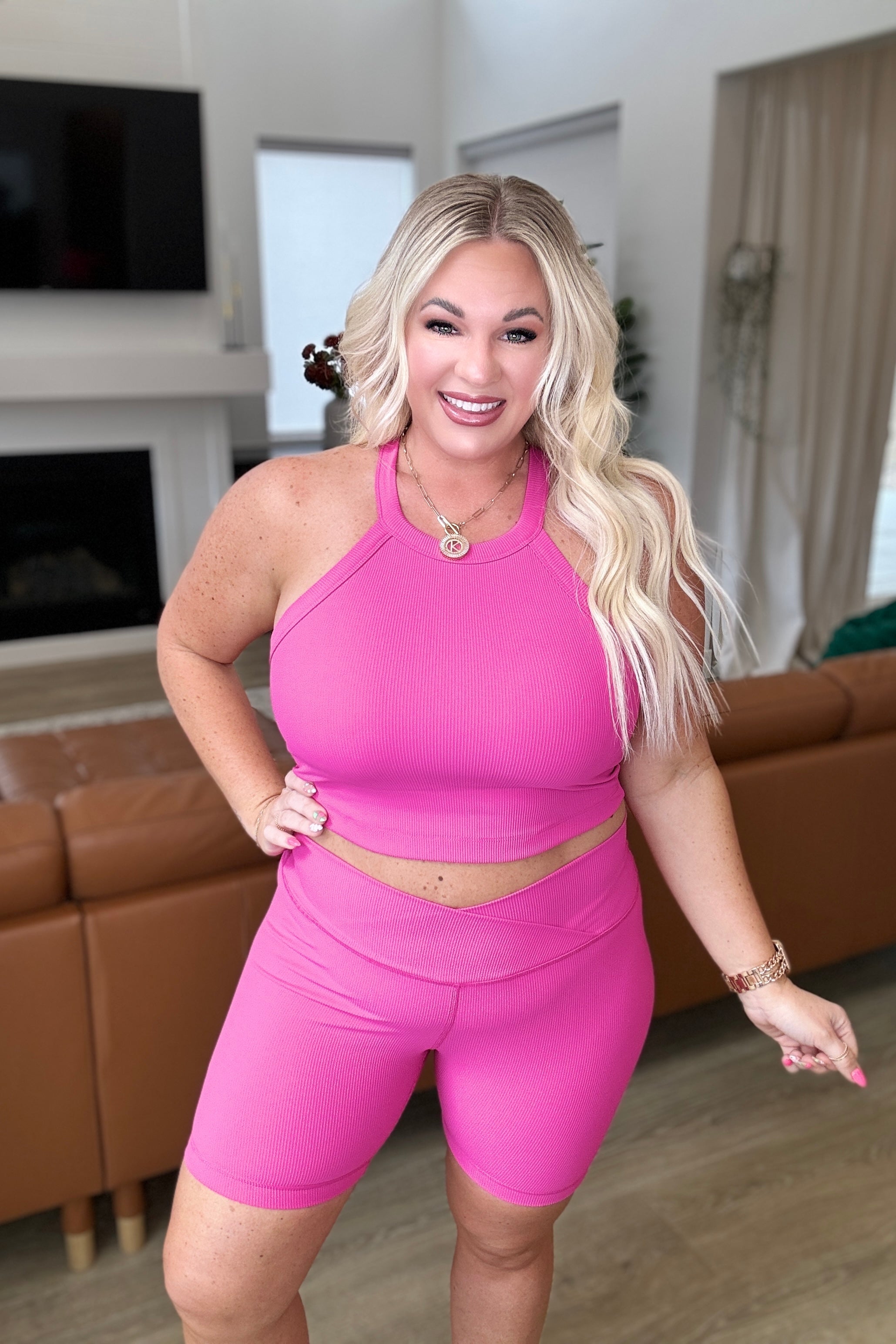High Rise Wide Waistband Biker Shorts in Fuchsia