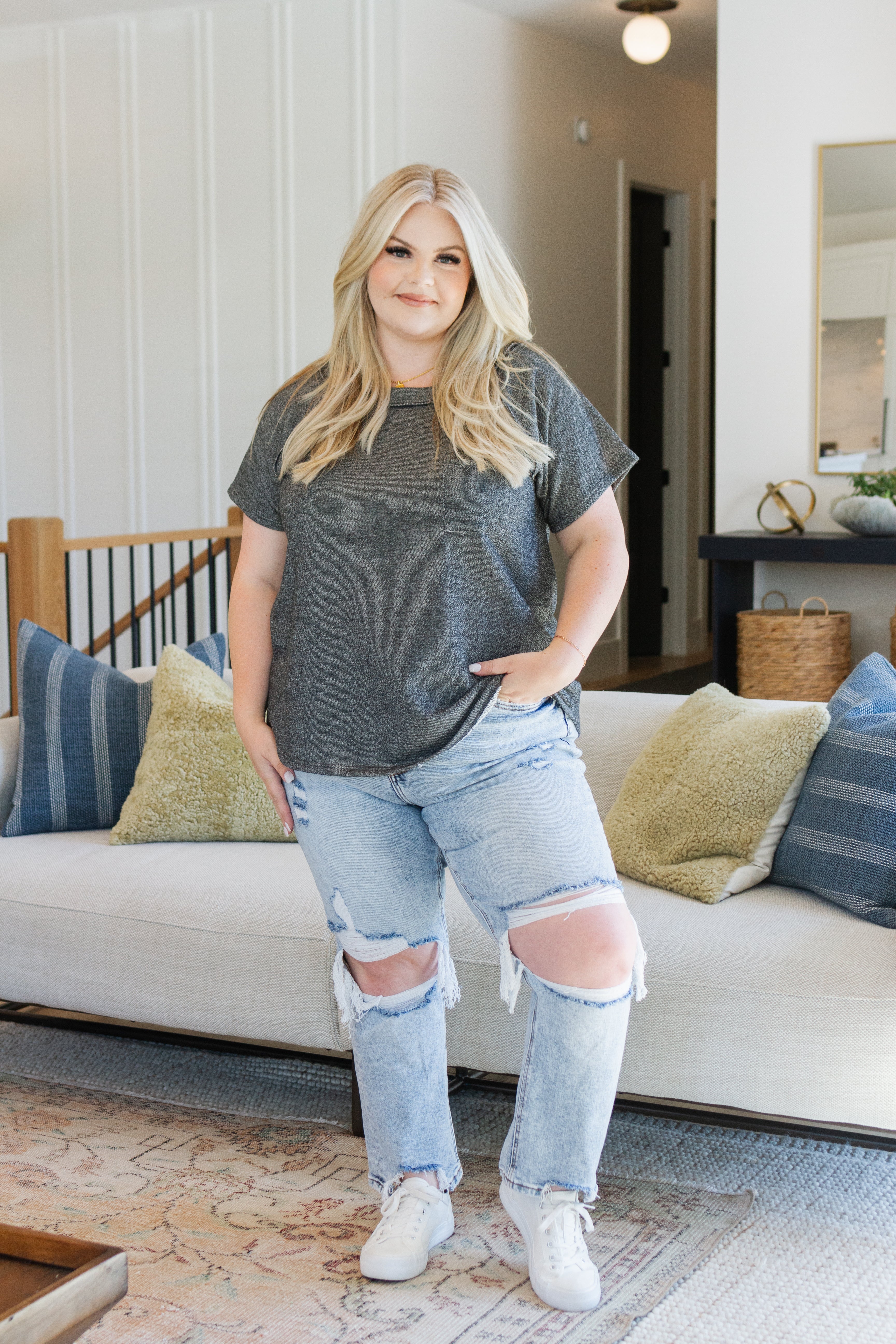 Zenana Full Size V-Neck Short Sleeve Slit T-Shirt and Shorts Set in Gray