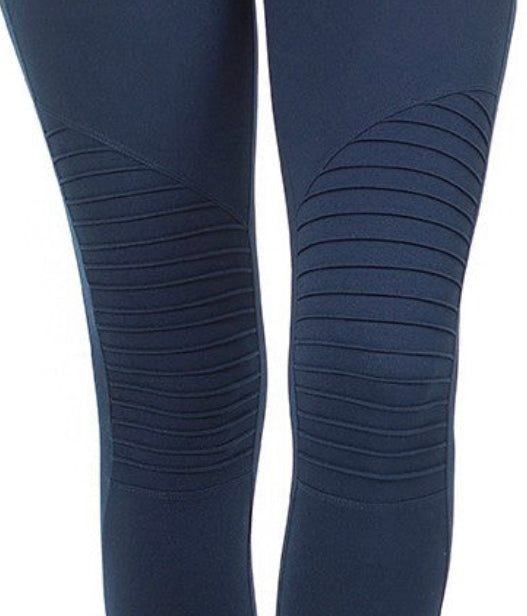 Brushed Microfiber Moto Leggings in Navy by Zenana
