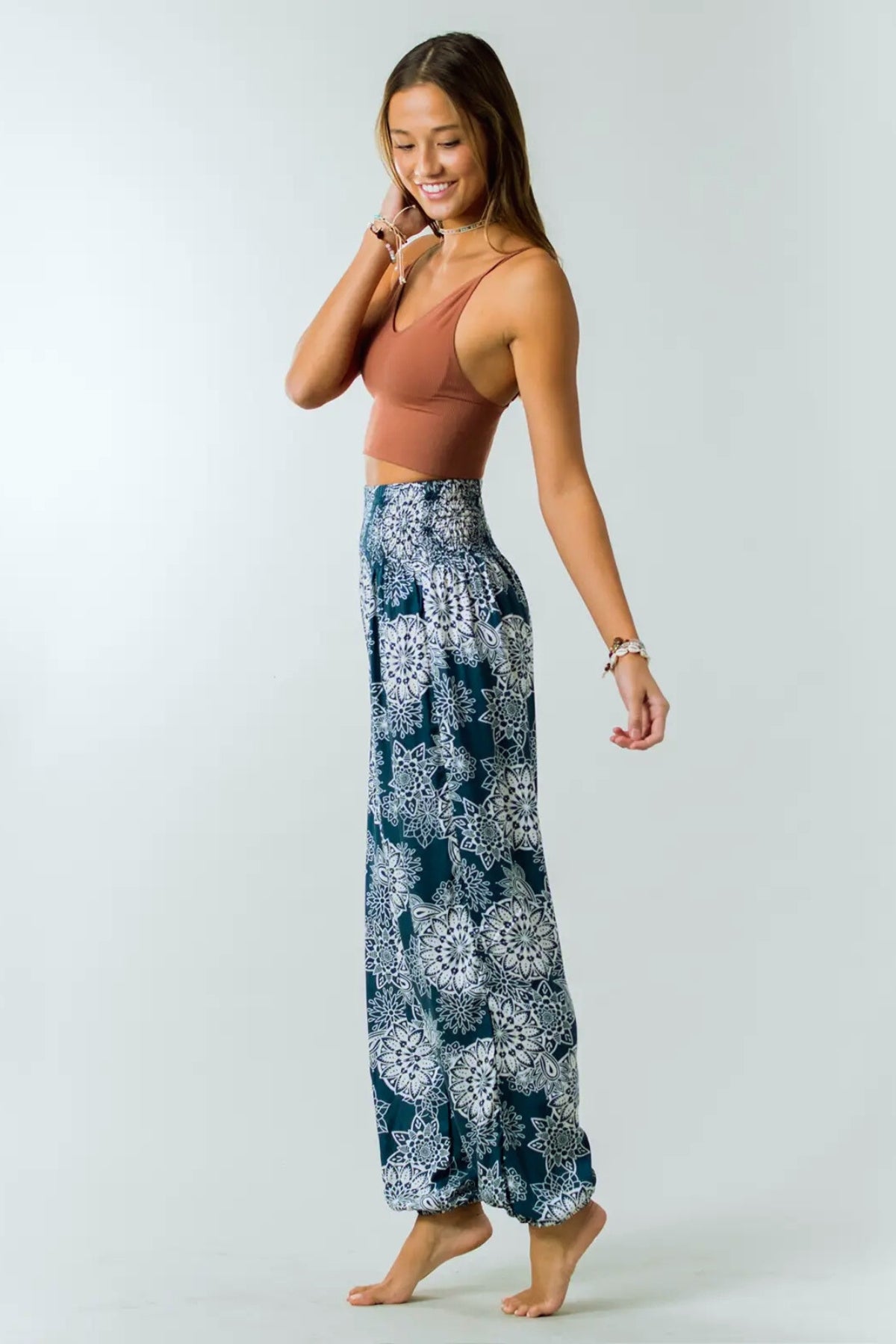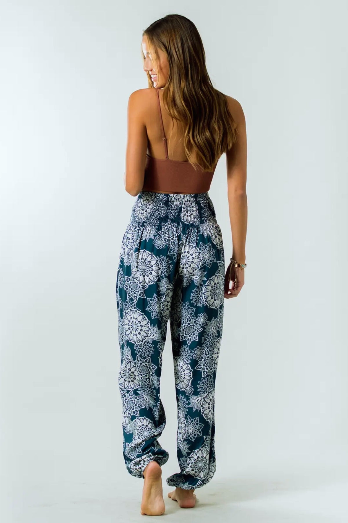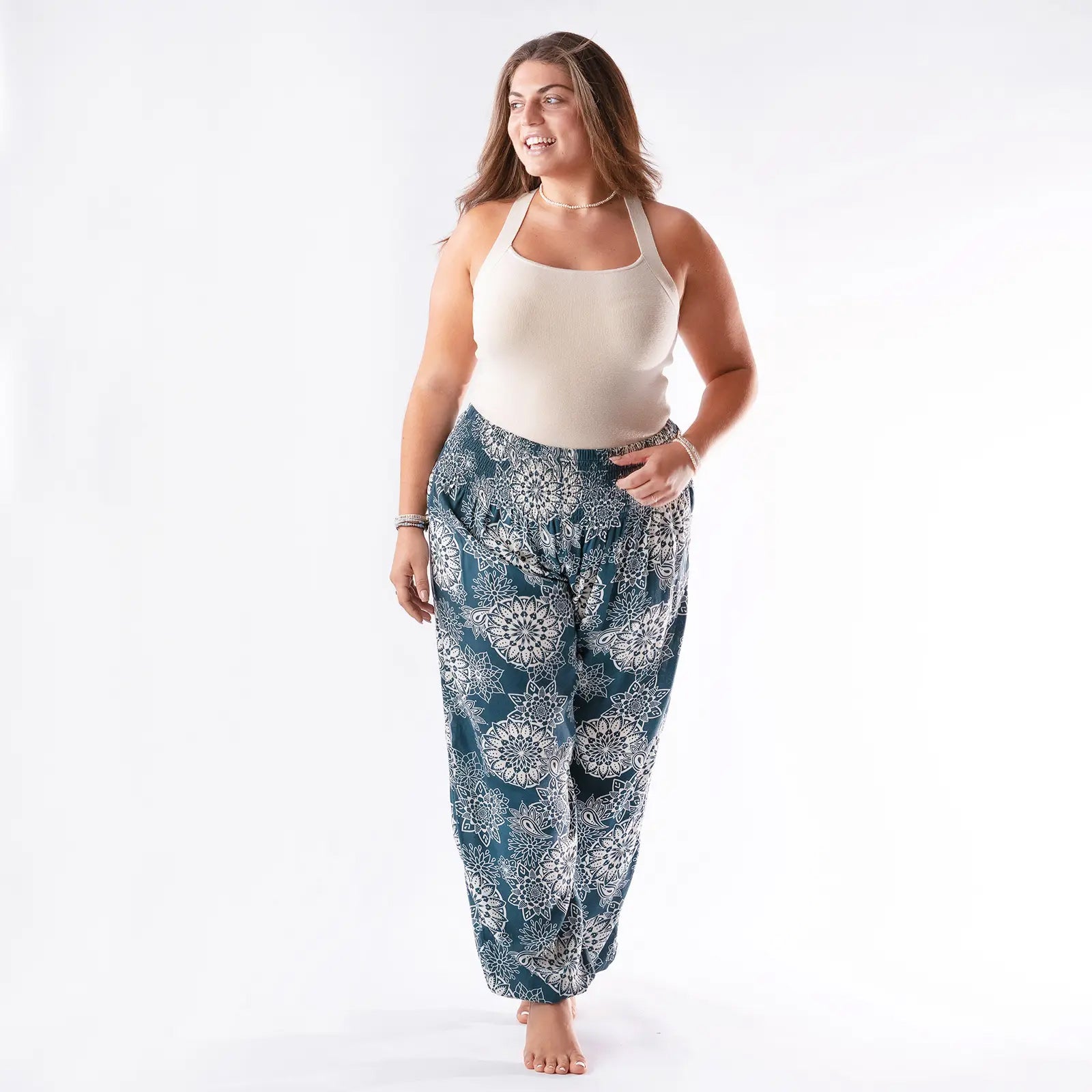 Lotus & Luna Boho Blue Mandala Yoga Pants in Deep Teal