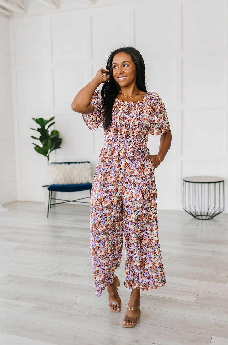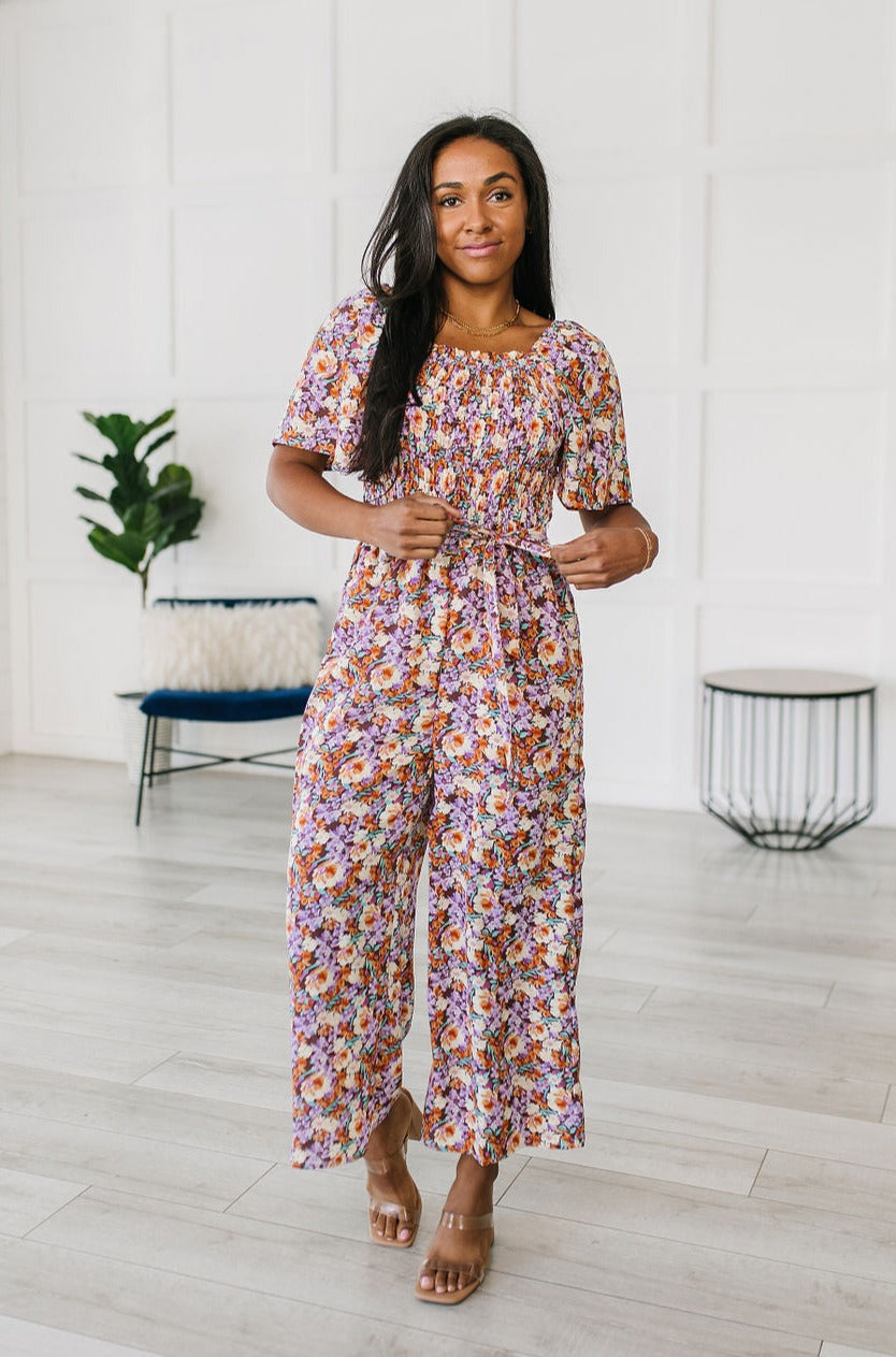BiBi Floral Pattern Slit Sweater in Lavender and Ivory