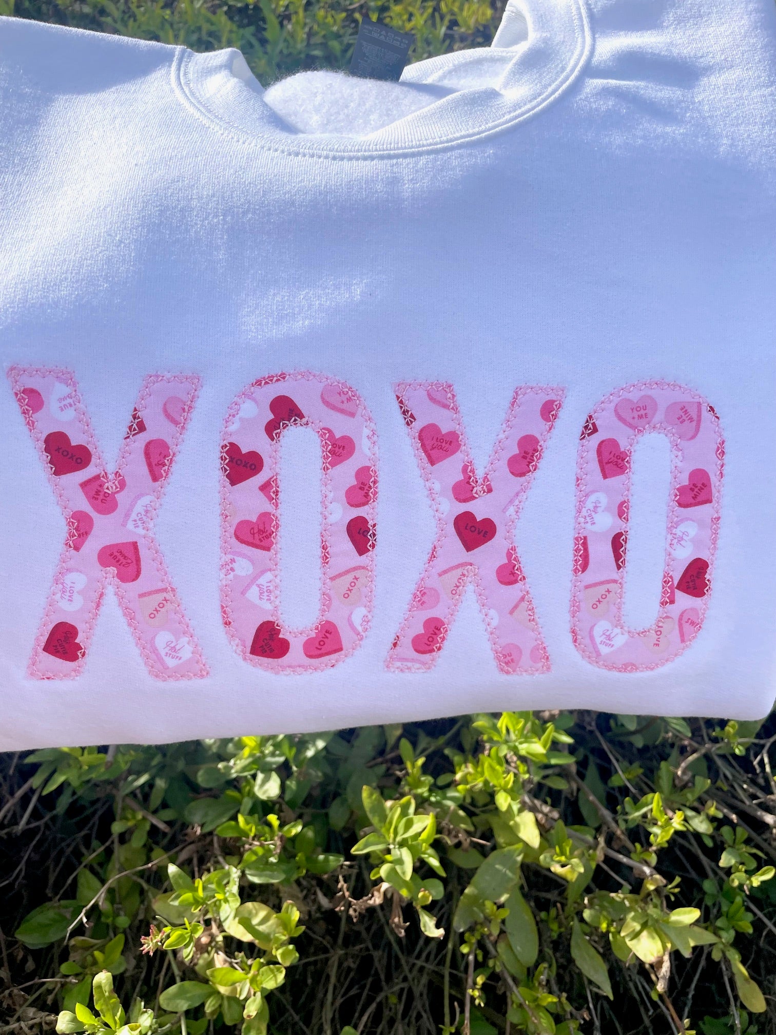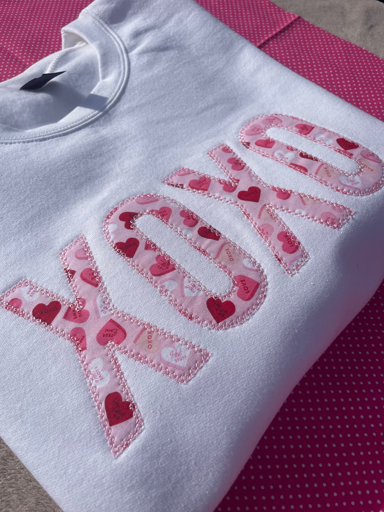 XOXO Valentine Conversation Hearts Embroidered Sweatshirt