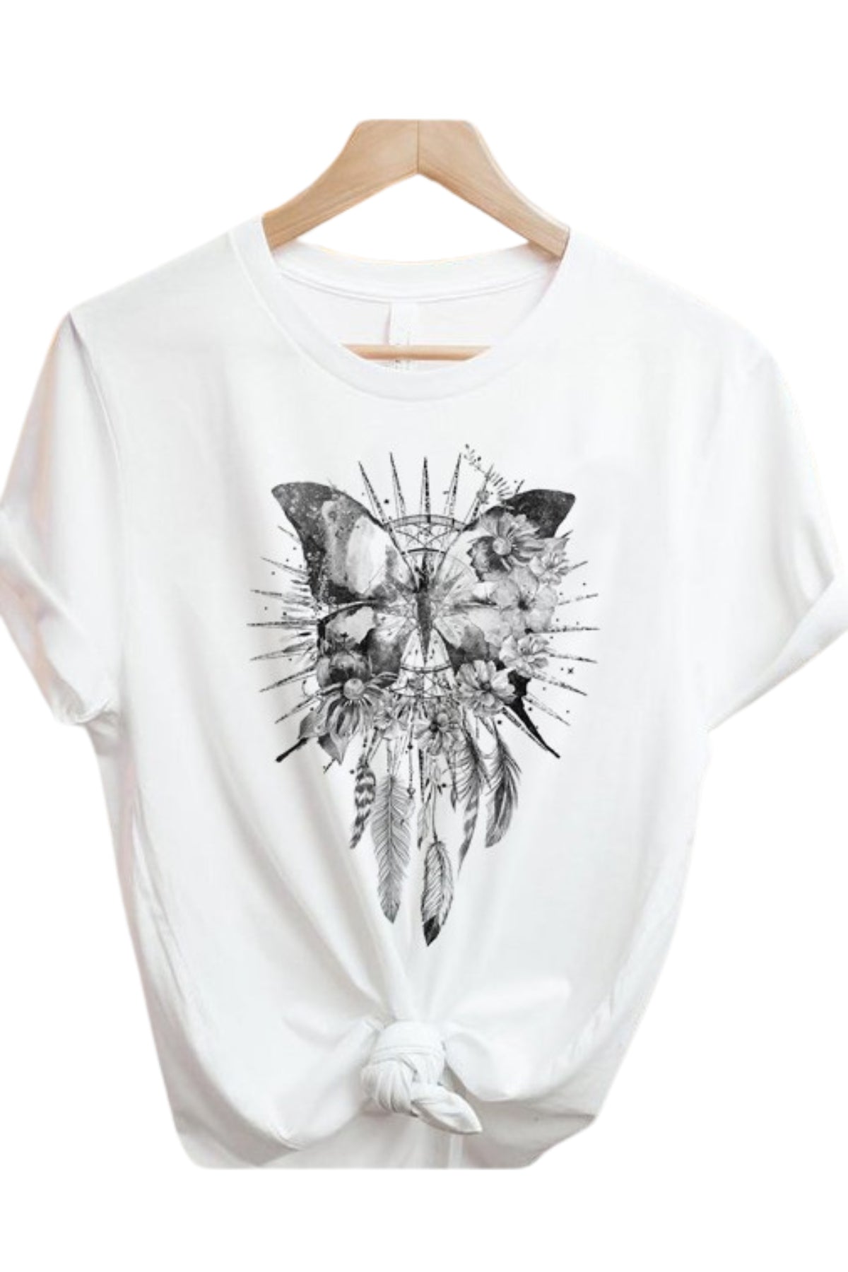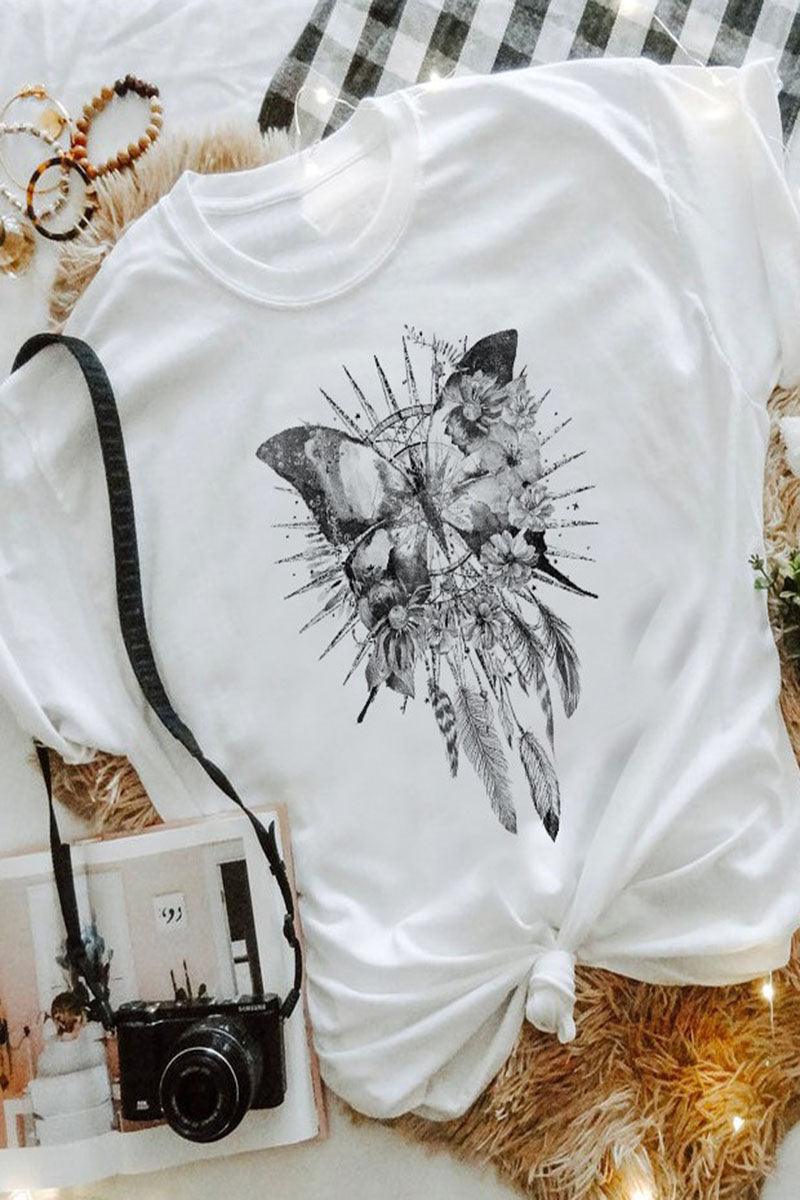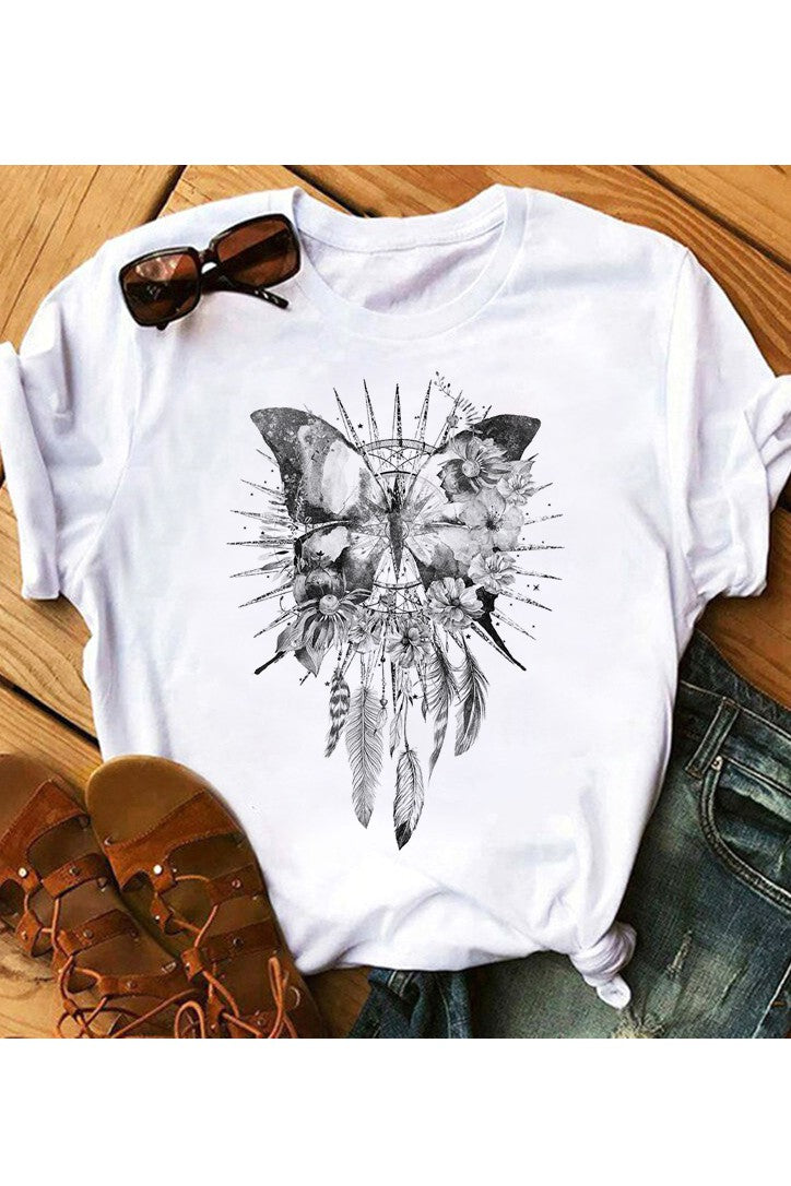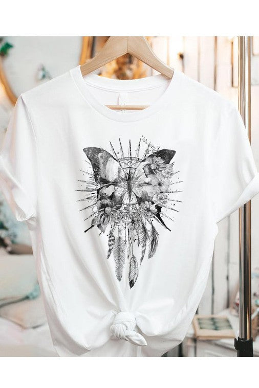 Boho Butterfly Dreamcatcher Graphic Tee Shirt in White