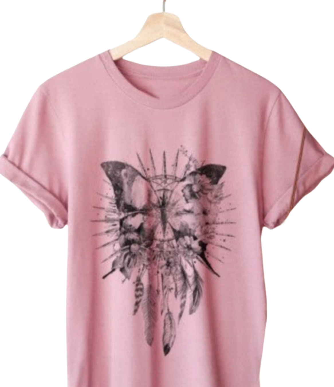 Boho Butterfly Dreamcatcher Graphic Tee Shirt in Mauve