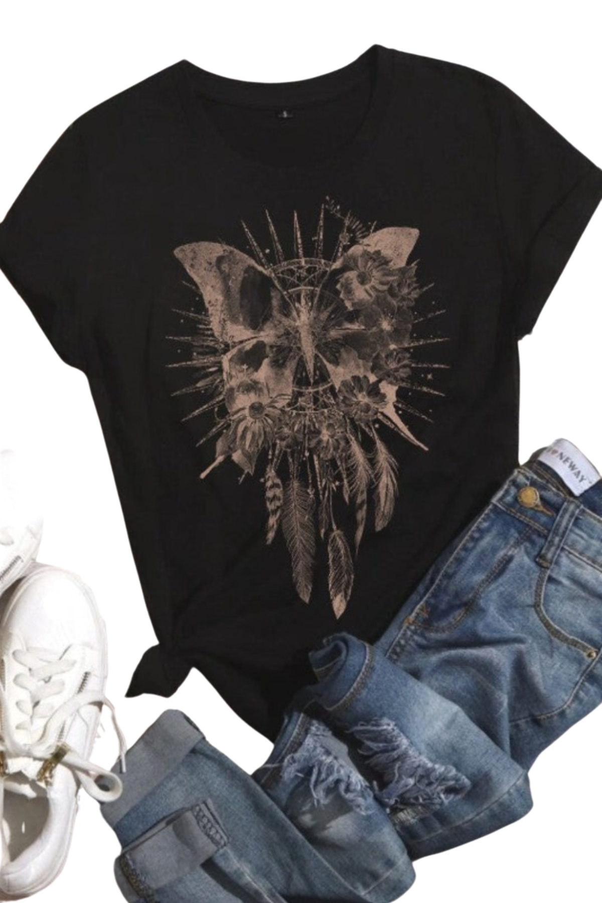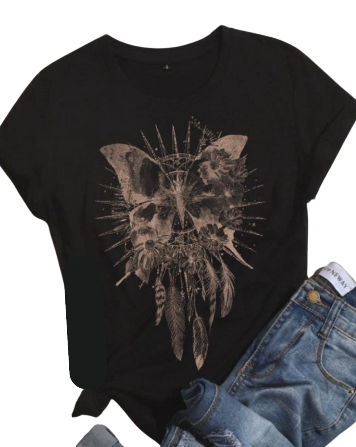 Boho Butterfly Dreamcatcher Graphic Tee Shirt in Black
