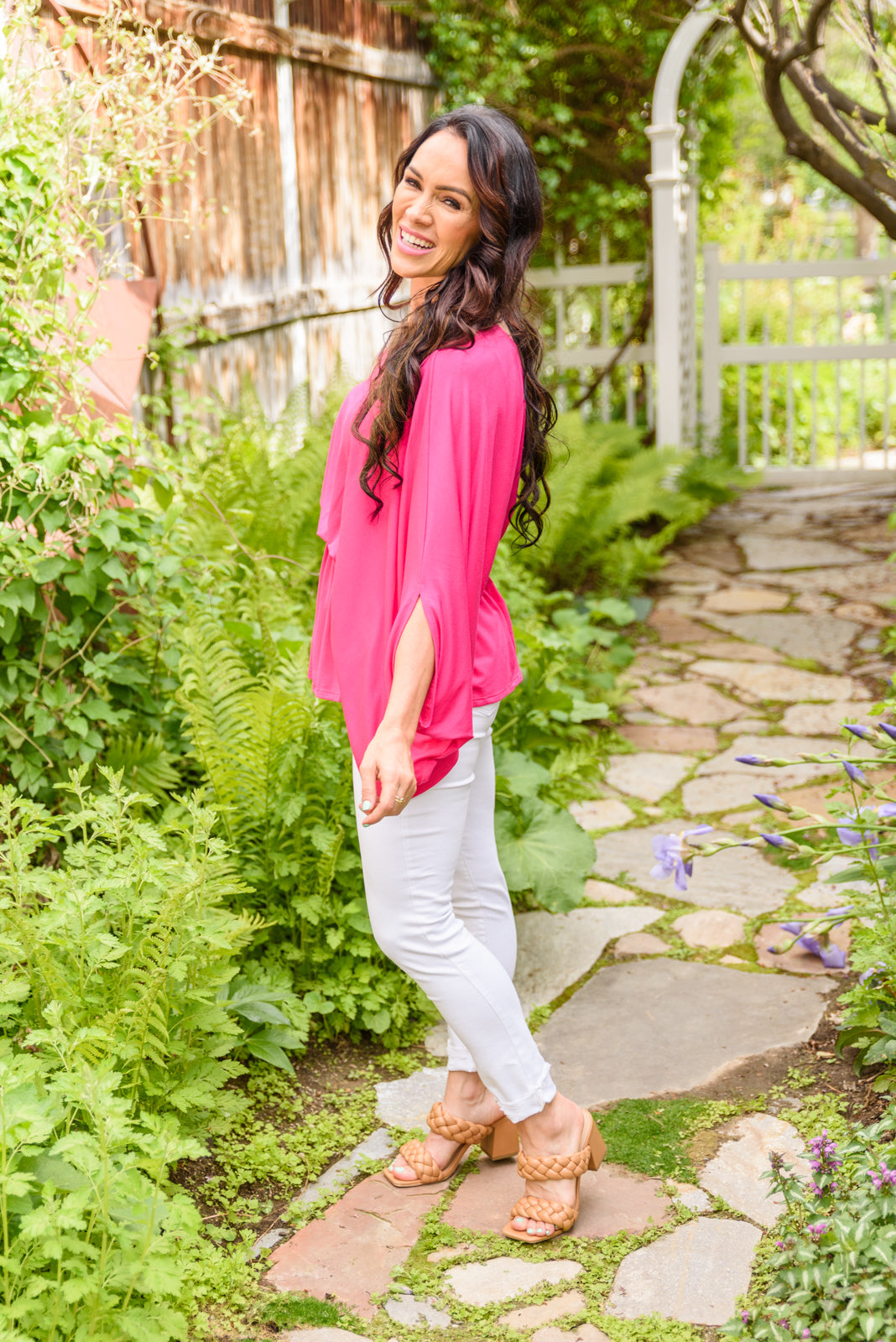 Casually Cute V-Neck Top in Magenta by Dear Scarlett
