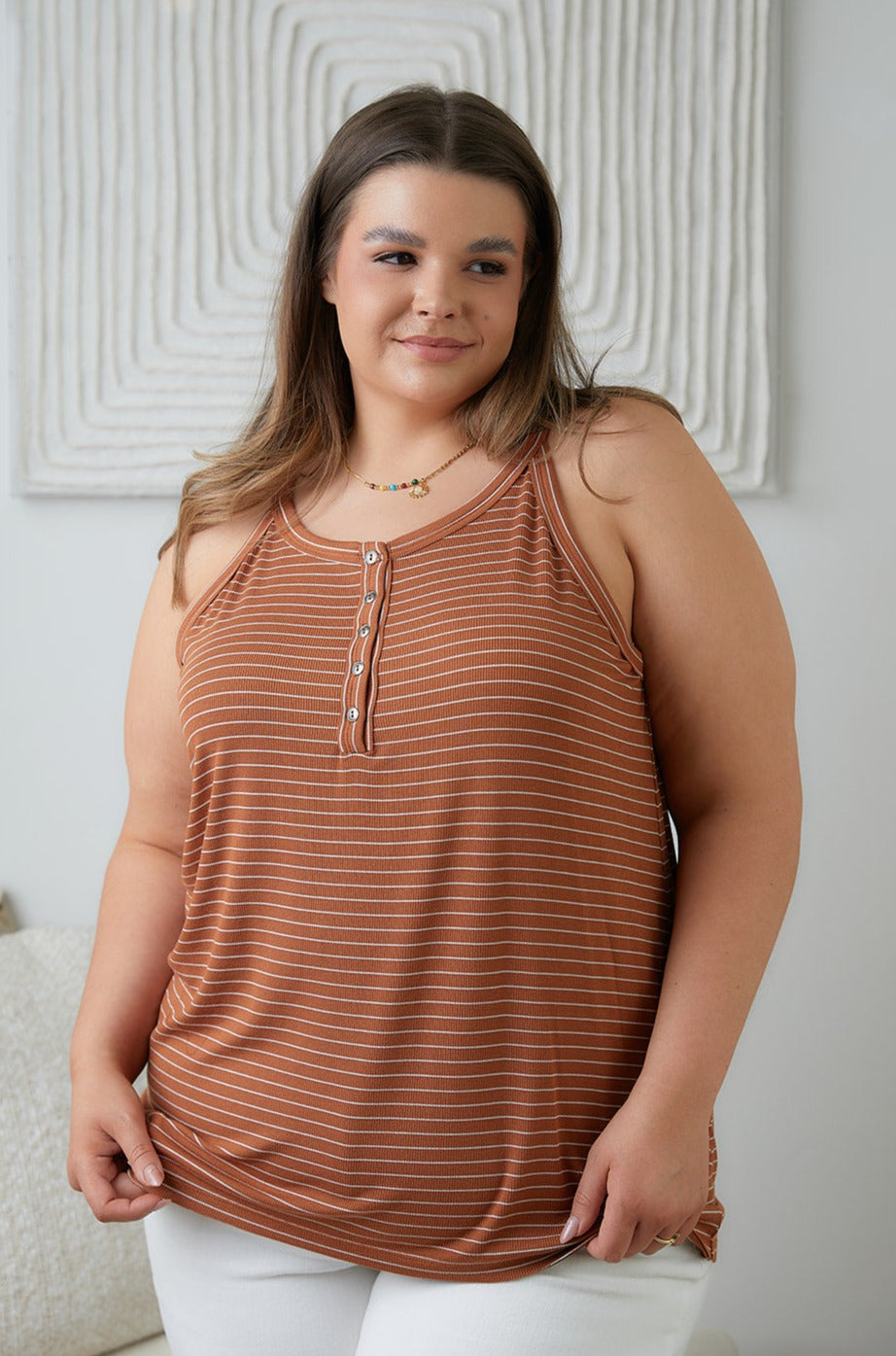 Look fresh and stylish in our Mittoshop Chill Vibes Striped Tank! Its unique exposed seams and baby ribbed knit will keep you cool and comfortable all day. The adjustable spaghetti straps and button up closure make this tank the perfect match for any summer look.