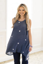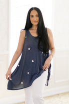 Embrace your wild side with our Wildflower Whimsy Tank! Made with a light terry fabric and reversible stitch detailing, this tank top features a white floral print that will add a playful touch to any outfit. Perfect for those who appreciate a touch of whimsy.