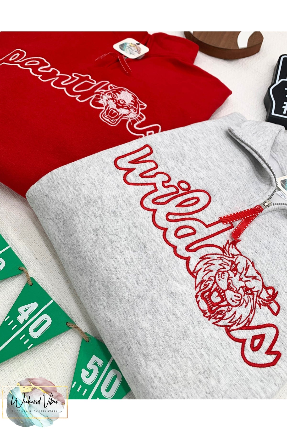 Embroidered Team Mascots 1/4 Zip Pullover Sweatshirt, Custom Sports Fan Apparel, Favorite Team Sweatshirt