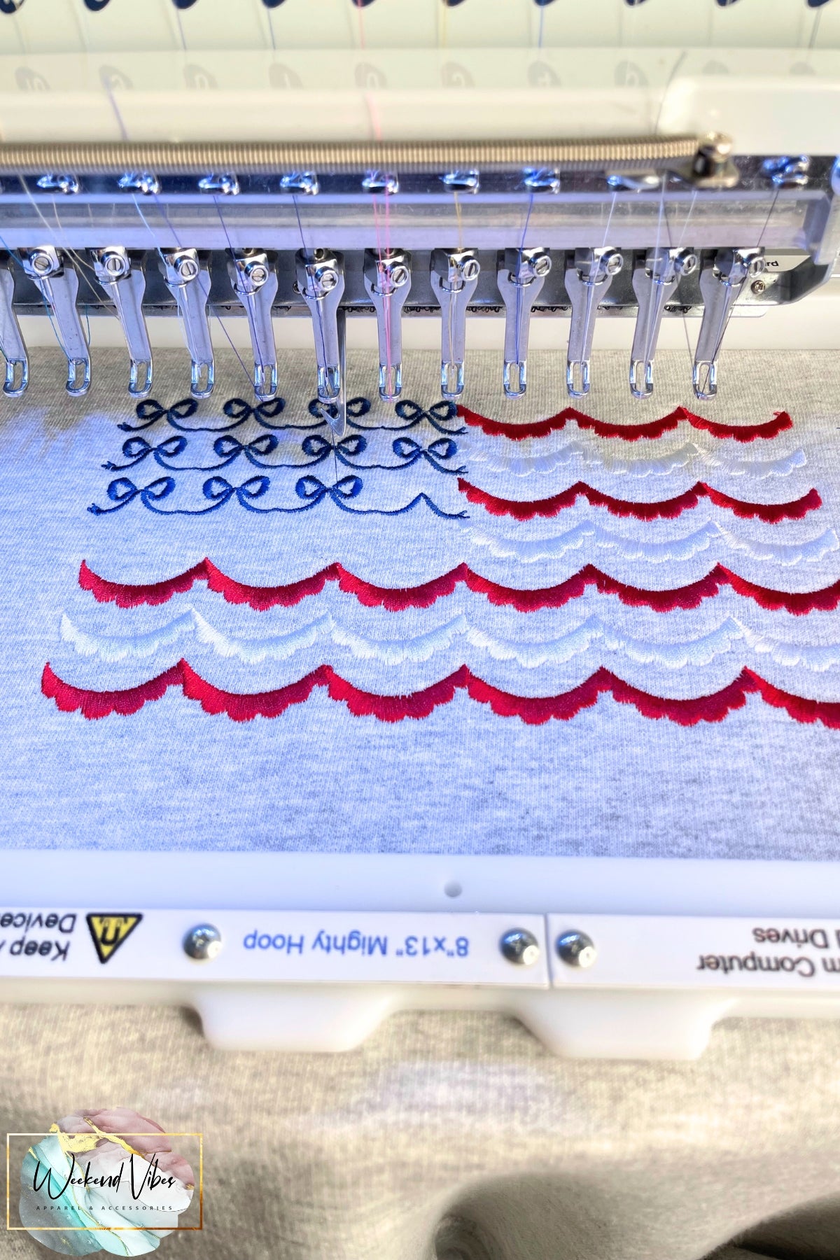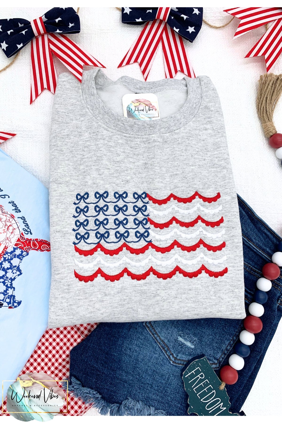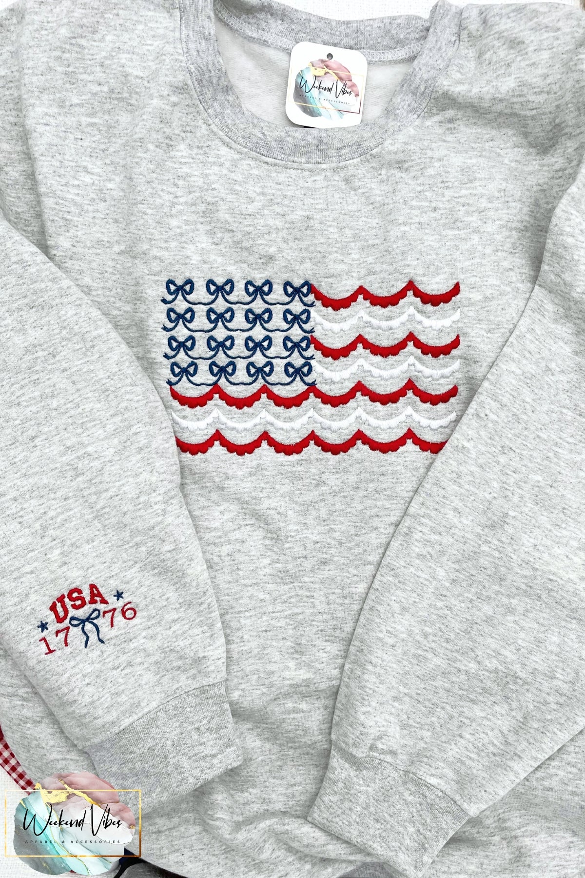 Embroidered Red White & Blue Bows Scallop Flag Sweatshirt