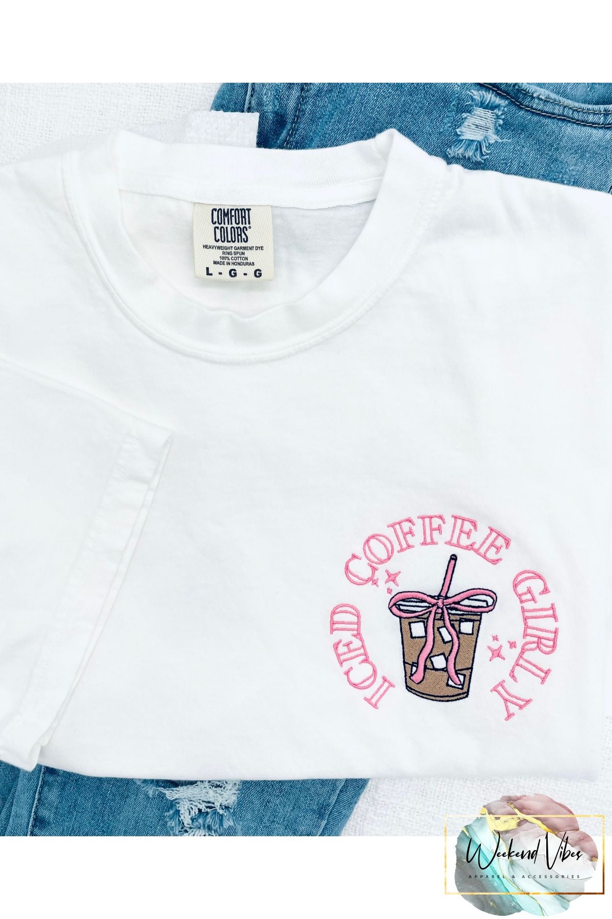 Keywords: Women's t-shirt, iced coffee, white mocha, starbies, Saturday Mornings, treat yourself, Soft Cotton, Casual Sunday, comfort colors, loungewear, teen gift, Shop Local, Weekend Vibes, weekendvibesapparel.
