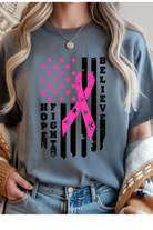 This Breast Cancer Awareness Graphic Tee features comfortable short sleeves and a modest round neckline, perfect for showing faith and support. Designed to inspire hope and strength, it serves as a meaningful reminder of courage through every challenge. Wear it as a symbol of prayerful solidarity and compassion.