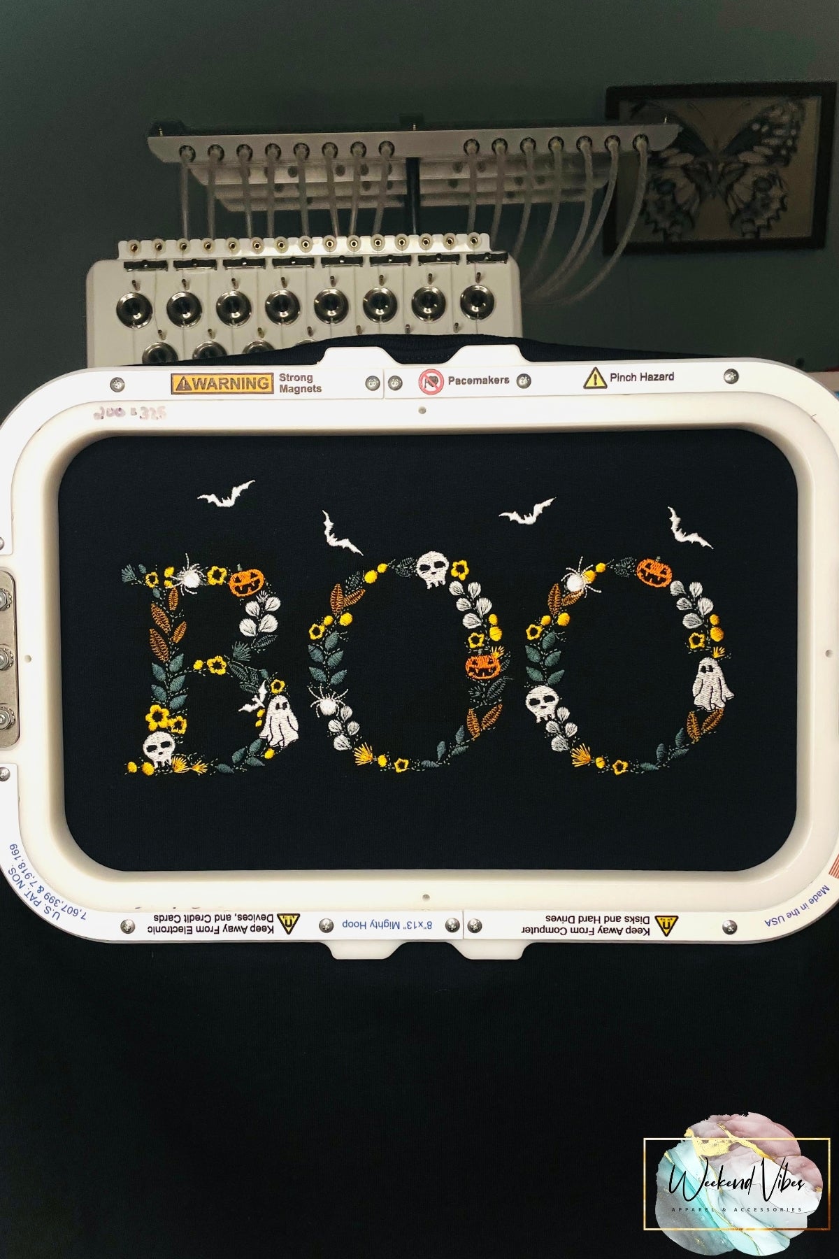 Embroidered Floral Boo Sweatshirt or Hoodie Sweatshirt