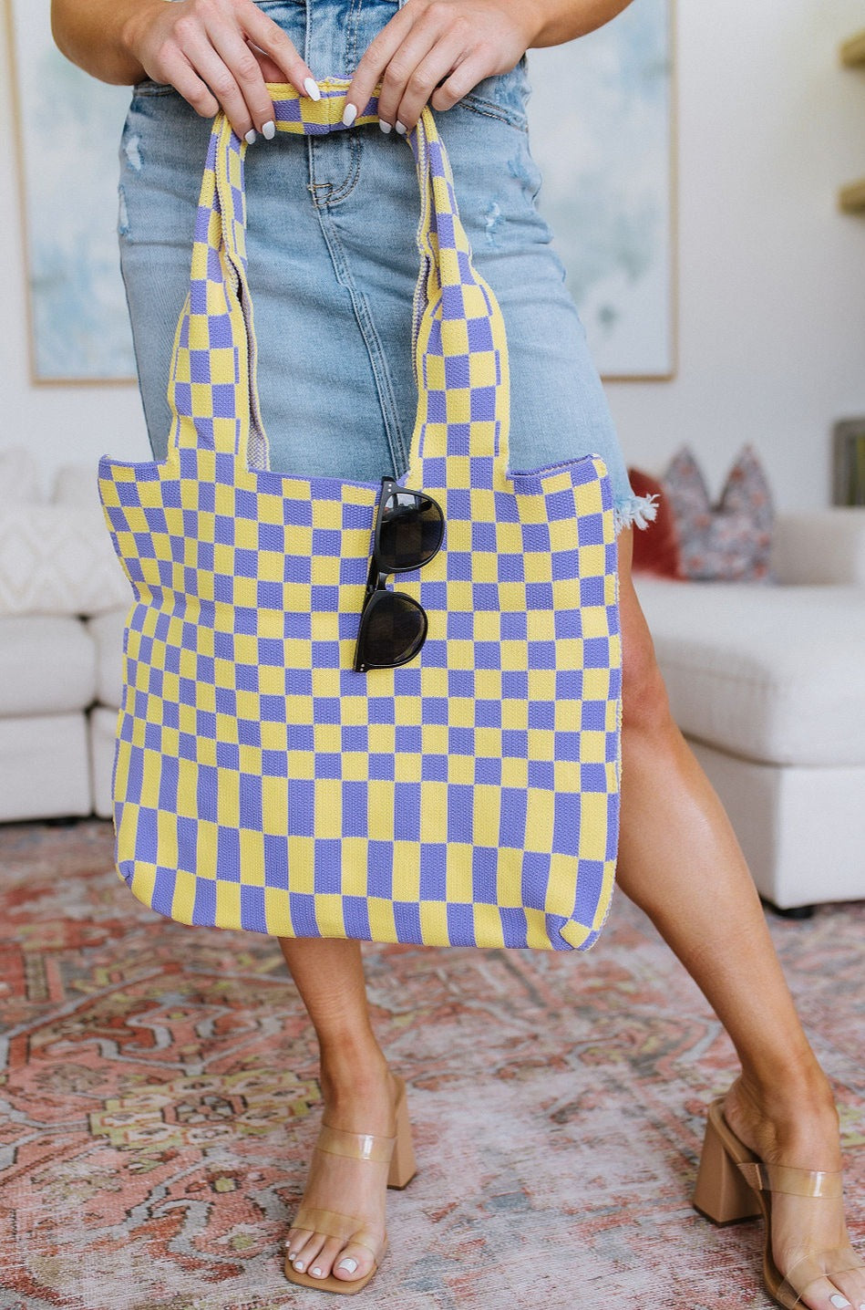 Checkerboard Lazy Wind Big Bag in Lilac & Yellow