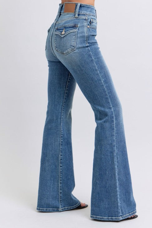 Judy Blue Ariana High Rise Double Button Waistband Flare Jeans