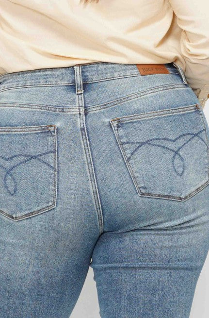 Judy Blue Tummy Control Back Embroidered Pocketed Bootcut Jeans