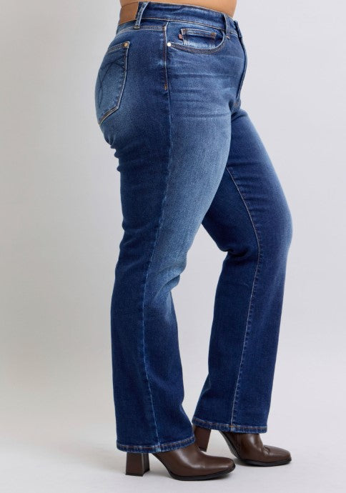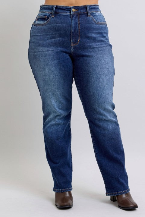 Judy Blue Washed Straight Leg Thermal Jeans with Pockets in Dark Wash