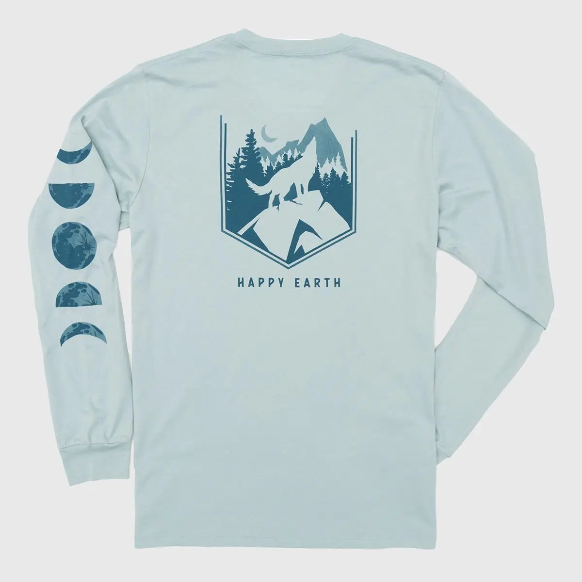 Men's Light Blue Howling Wolf Short Sleeve Graphic Tee by Happy Earth