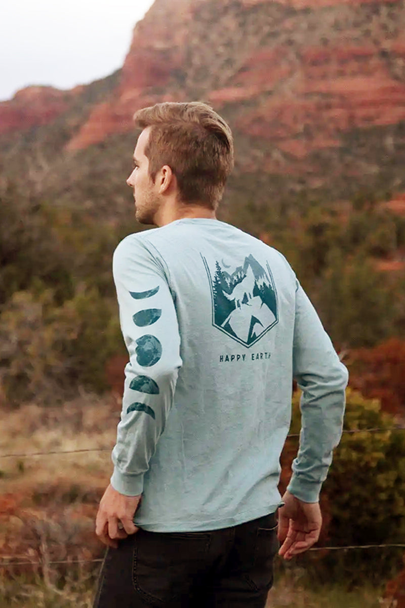 Men's Howling Wolf Long Sleeve Graphic Tee Shirt in Light Blue