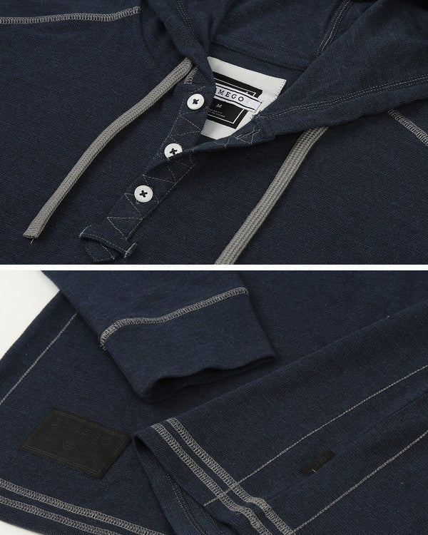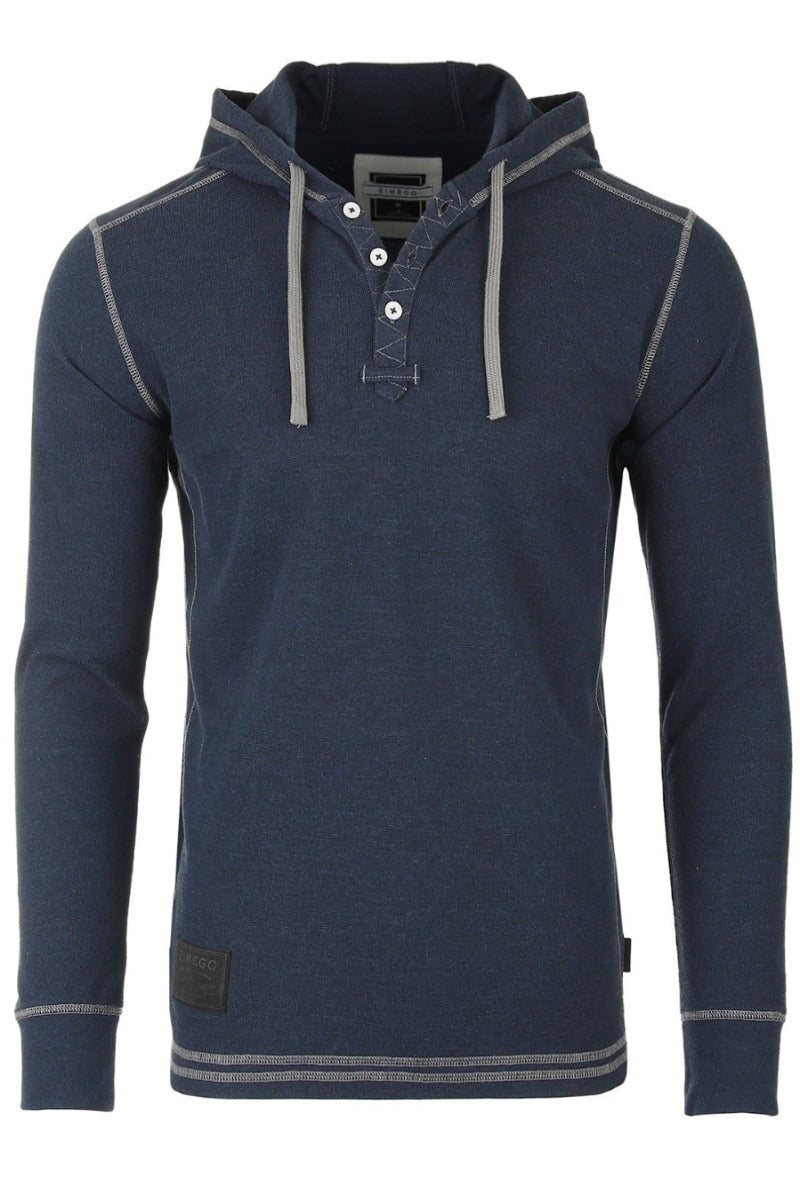Men's Henley Long Sleeve Navy Pullover with Hood