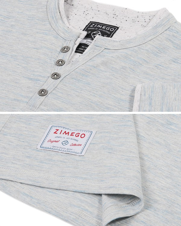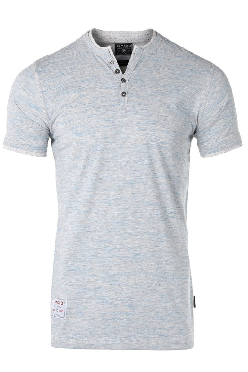 Zimego Men's Short Sleeve Double Layer V Neck Henley