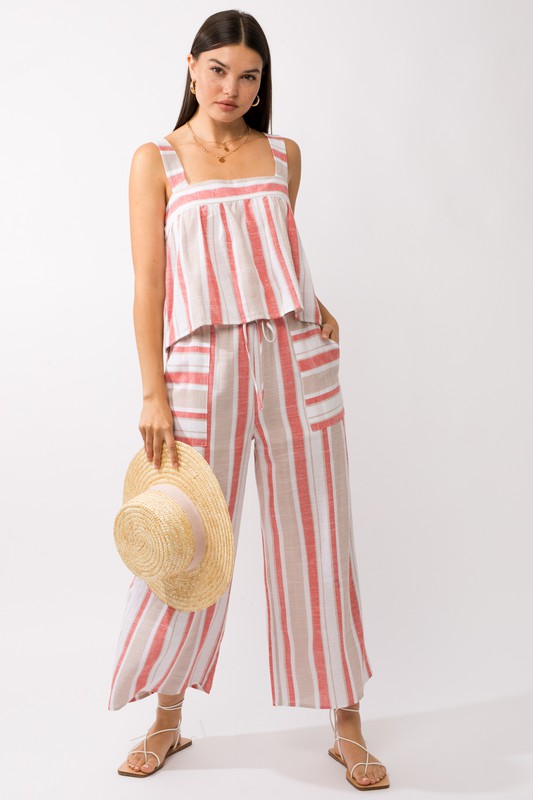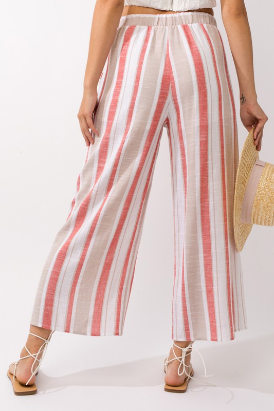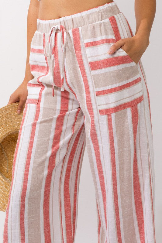 Gilli Linen Coral Striped Weekend Pants