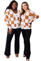 Stay cozy and chic with this checkered button-up V-neck dropped shoulder cardigan. The checkered pattern adds a trendy and eye-catching element to this classic cardigan, while the button-up design allows for versatile styling options. The dropped shoulder design adds a relaxed and comfortable fit, perfect for layering or wearing on its own. Stay stylish and warm with this must-have checkered cardigan.