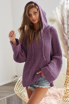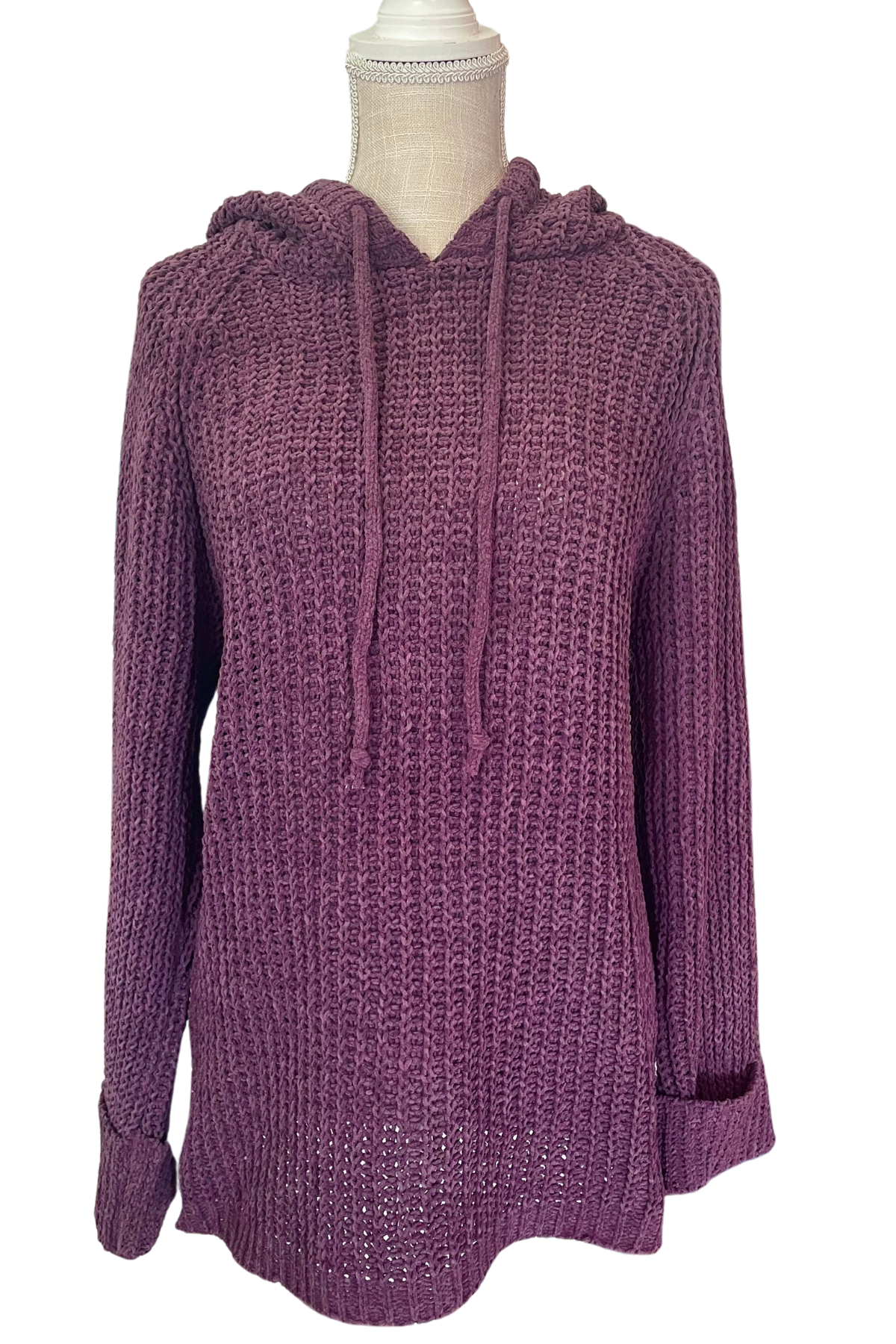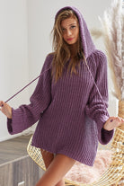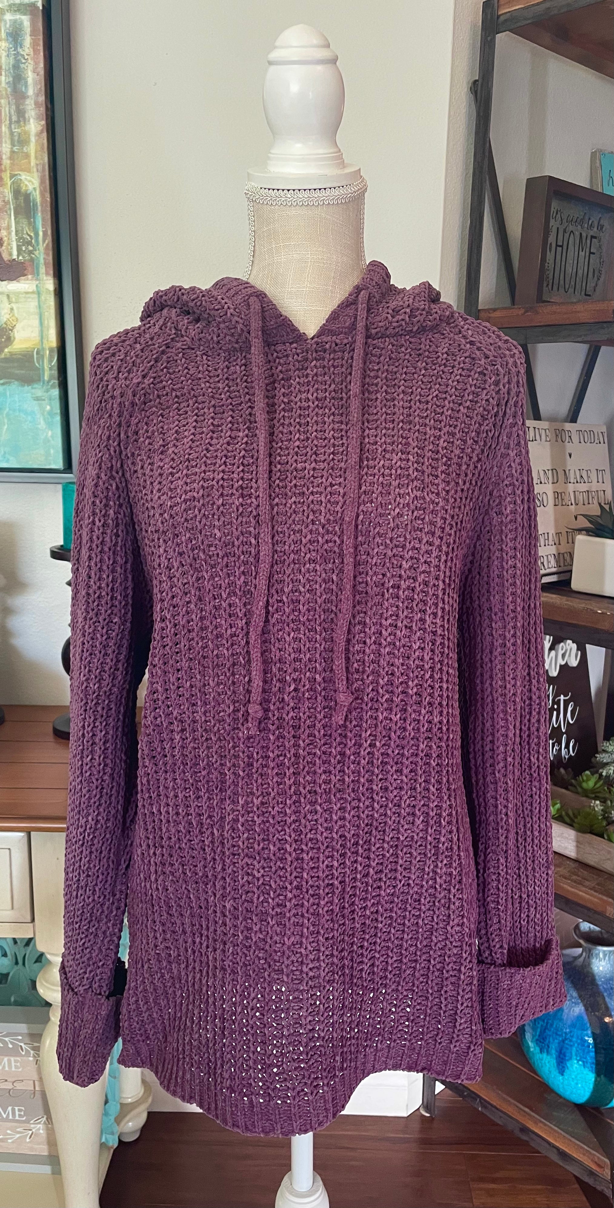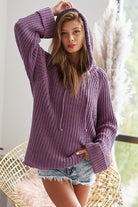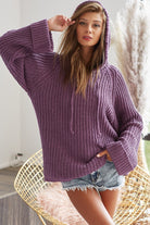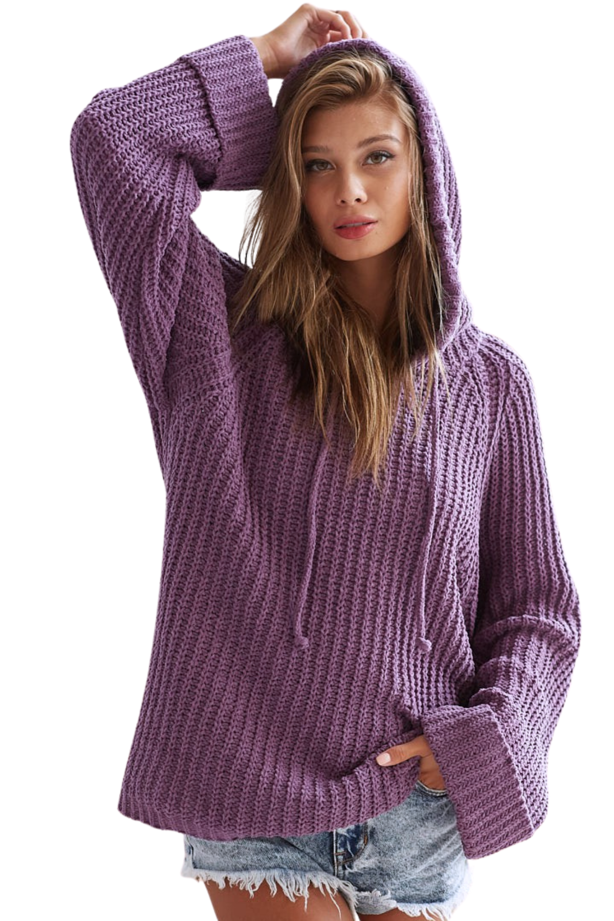 Loving this BiBi super soft beautiful plum colored sweater hoodie with wide sleeves and drawstrings. As the season cools down, turn up the heat in style with our loose knit sweater! It's sure to add gorgeous color & texture to your outfit.