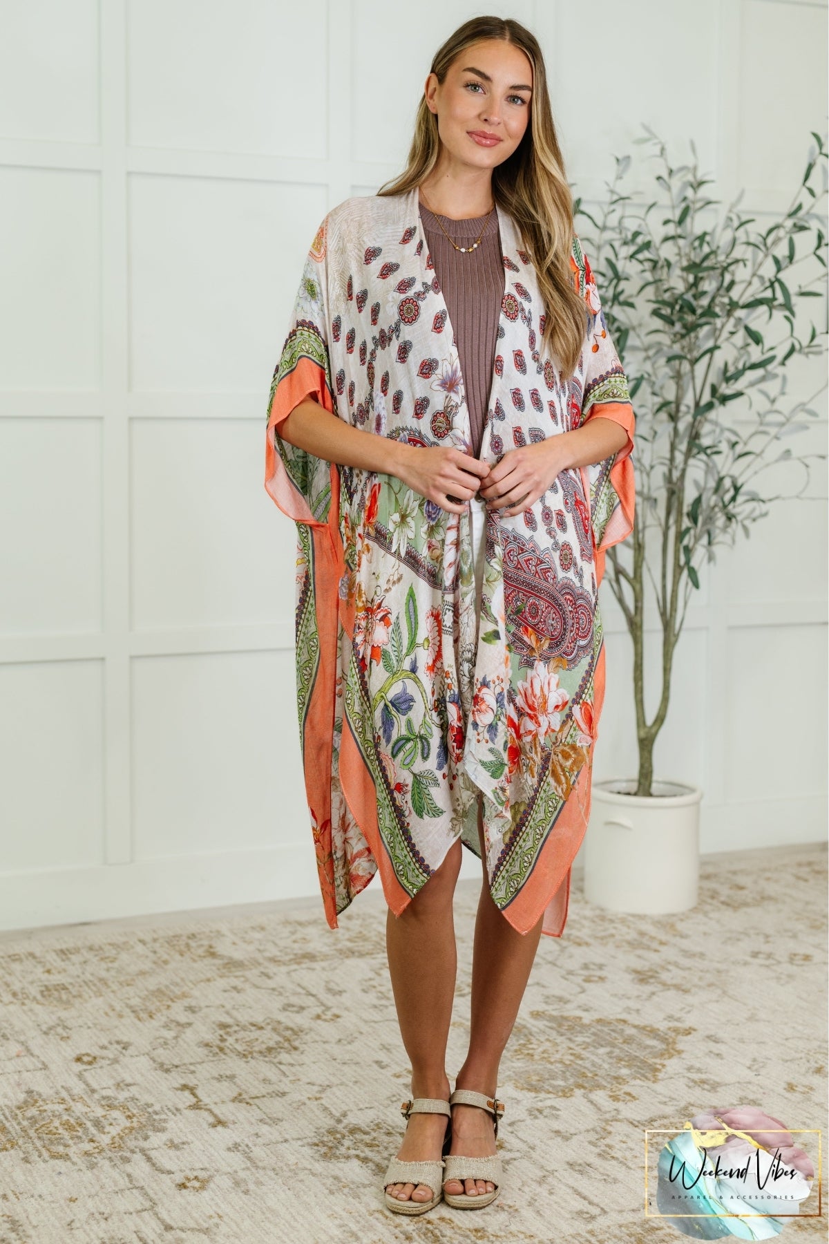 Breezy and effortless, the Tide to Me Open Front Kimono is the perfect lightweight layer for sun-drenched days and balmy evenings. Made from a slightly sheer woven fabric, it features an easy open front, relaxed batwing sleeves, and side slits for a fluid, airy feel. Whether you're layering it over a swimsuit or styling it with denim, this kimono brings a laid-back, coastal vibe to any look.