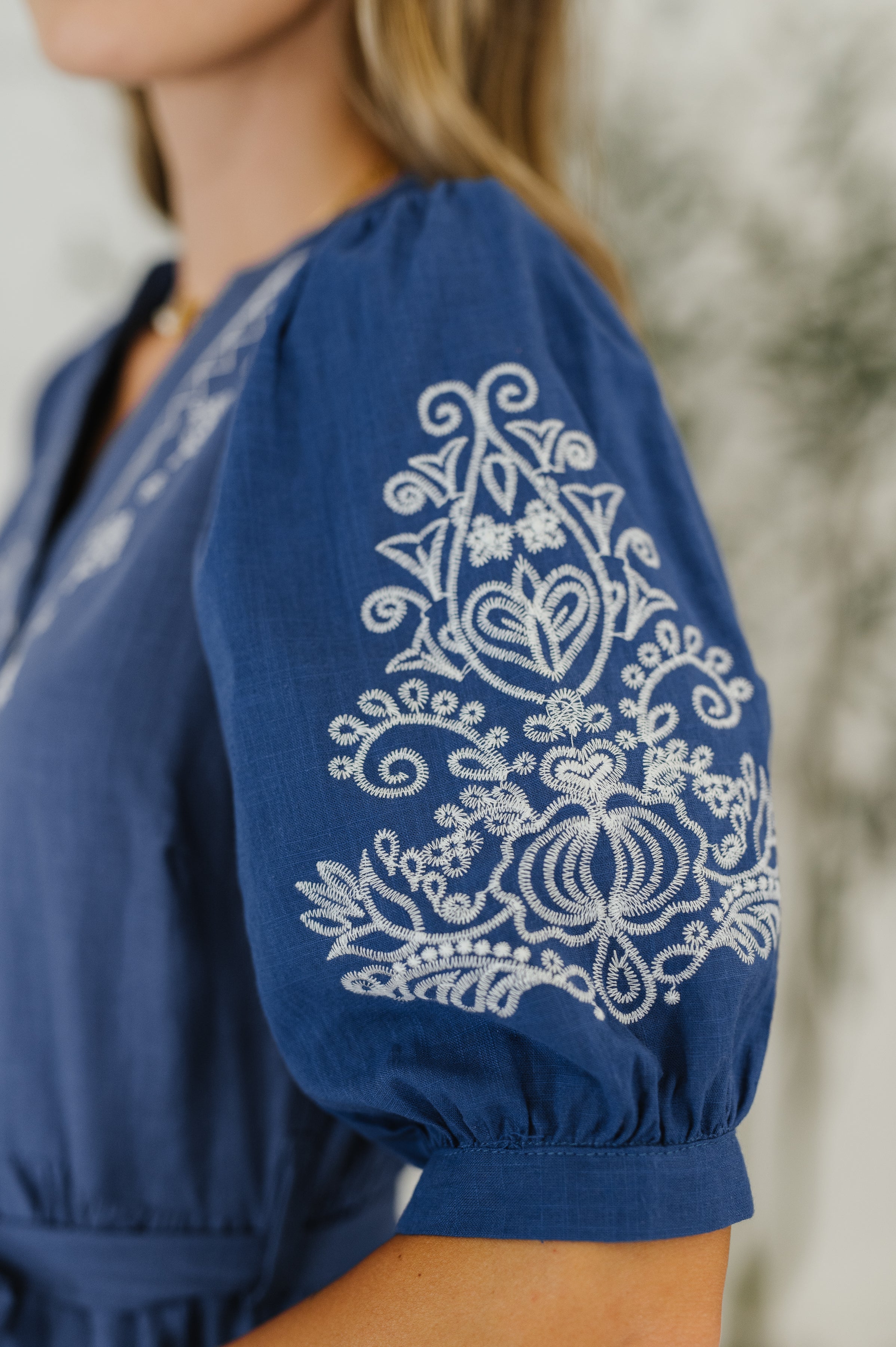 Delicate Devotion Puff Sleeve Dress in Blue by Polagram
