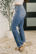 Step into style with our Judy Blue Maureen High Rise Distressed Bootcut Jeans! Featuring a trendy zip fly, edgy distressed details, and a fun frayed hem, these jeans bring a playful twist to your wardrobe. The flattering high rise and bootcut silhouette create a perfect fit that moves with you, making every step a confident statement. Perfect for mixing and matching with your favorite tops and shoes!