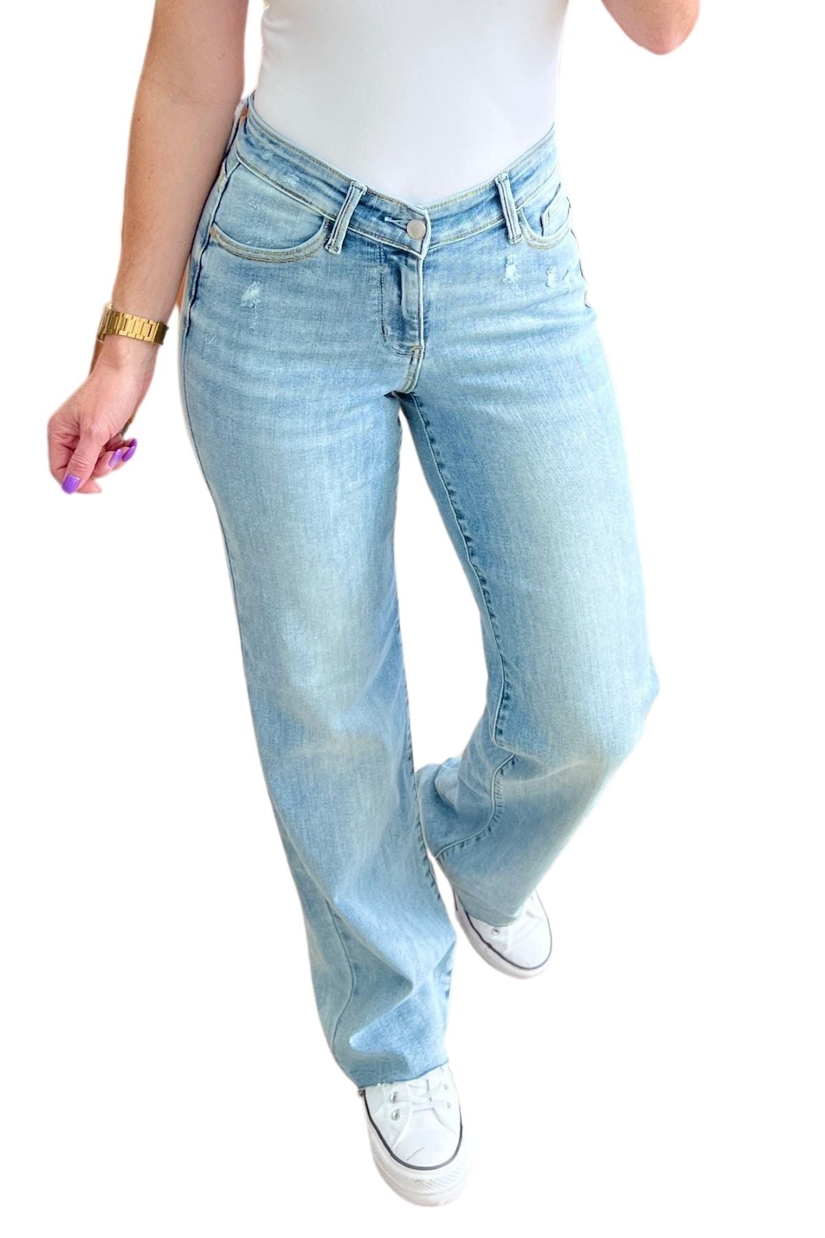 Judy Blue Mildred High Rise V Front Waistband Straight Jeans