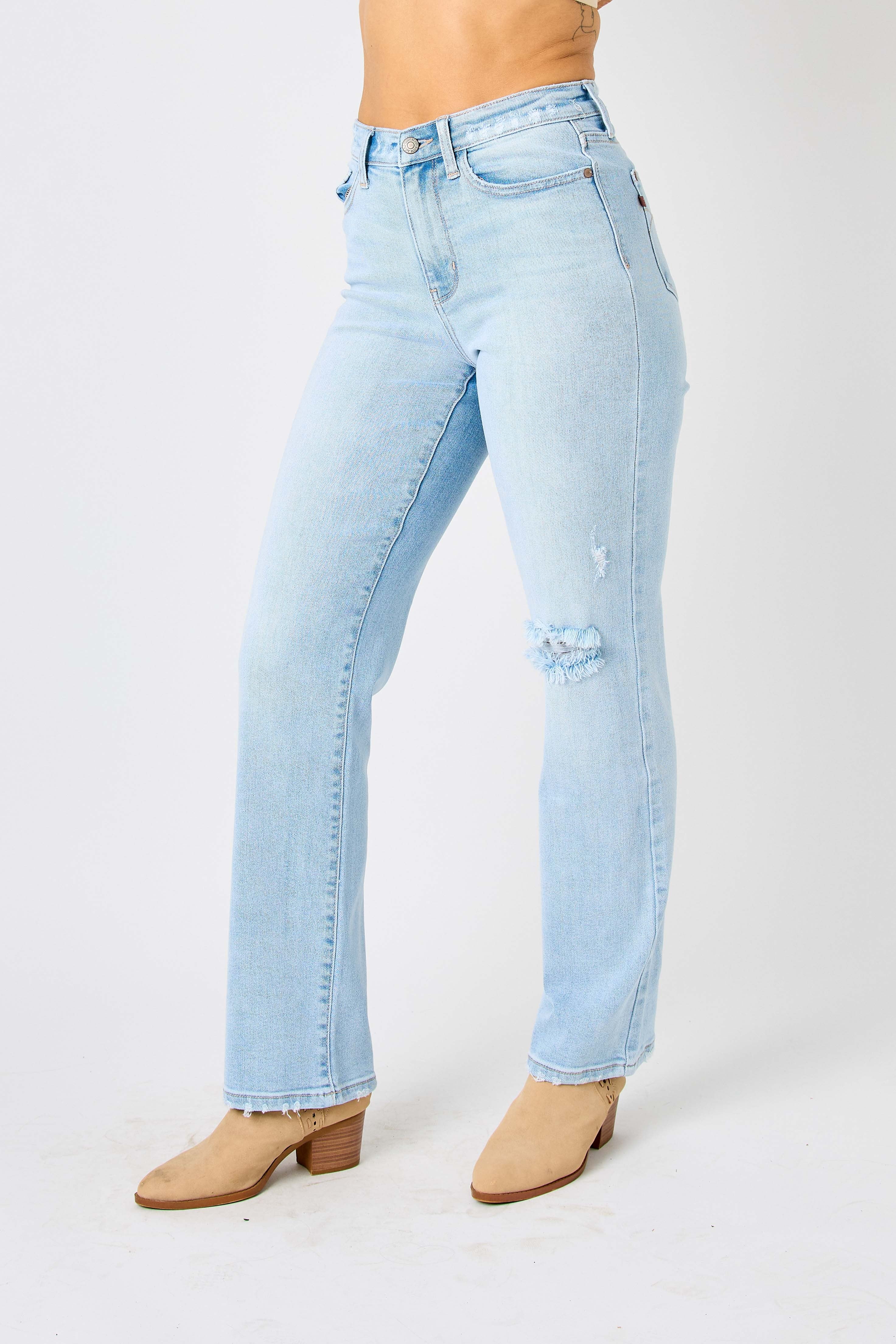 Judy Blue High Waist Stone Wash Straight Jeans in LIght Denim Wash