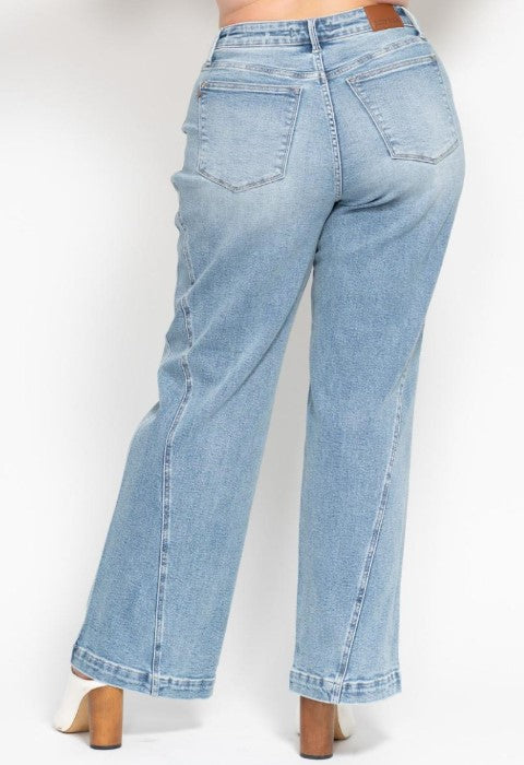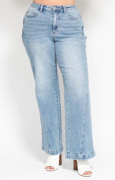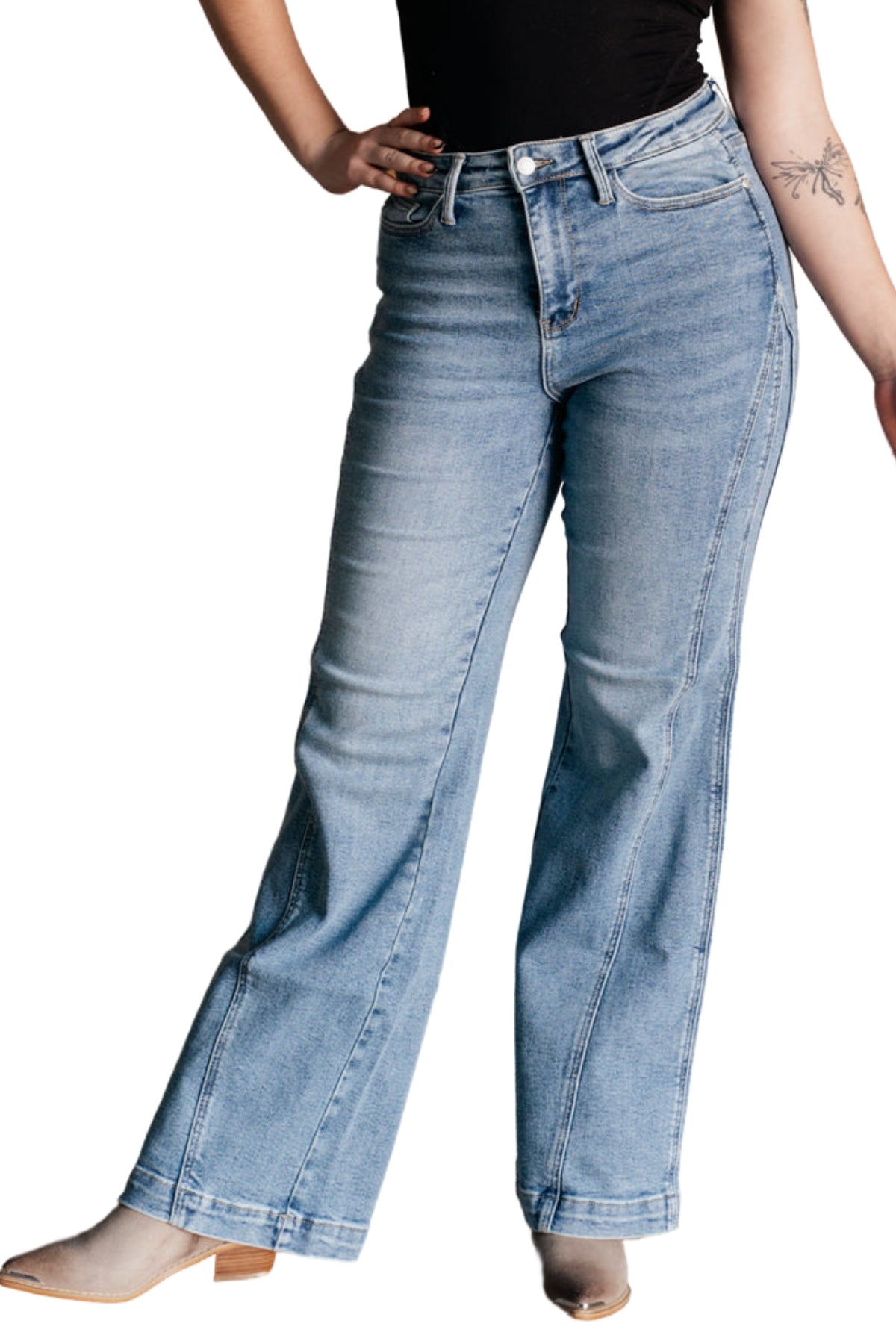 Judy Blue Melia High Rise Side Seam Detail Wide Leg Jeans