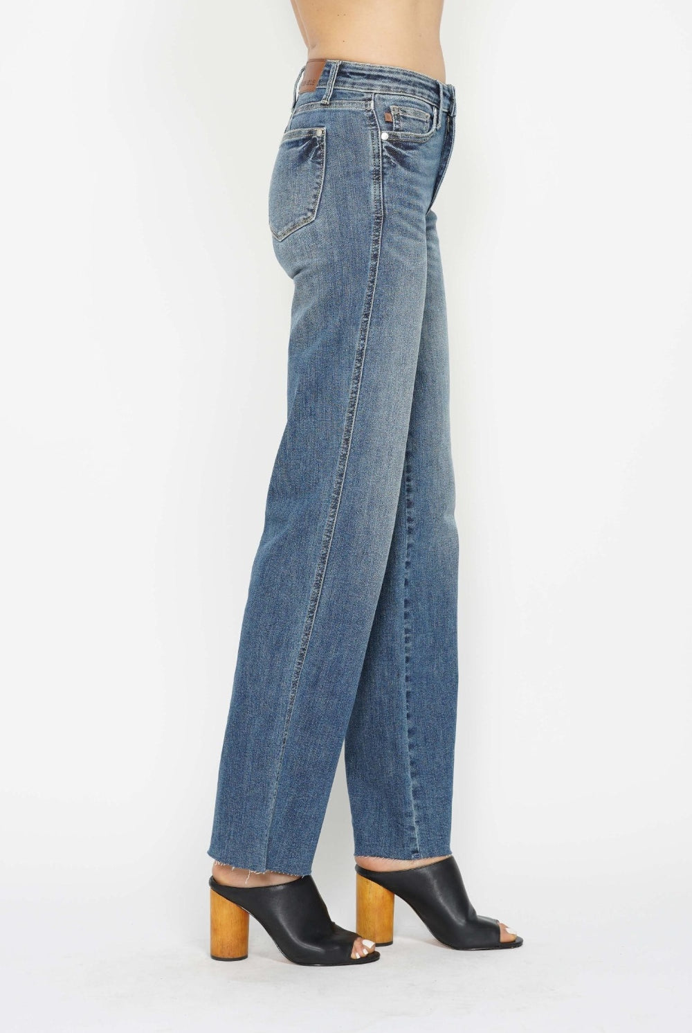 Judy Blue Tummy Control Straight Jeans with Raw Hem in Medium Wash