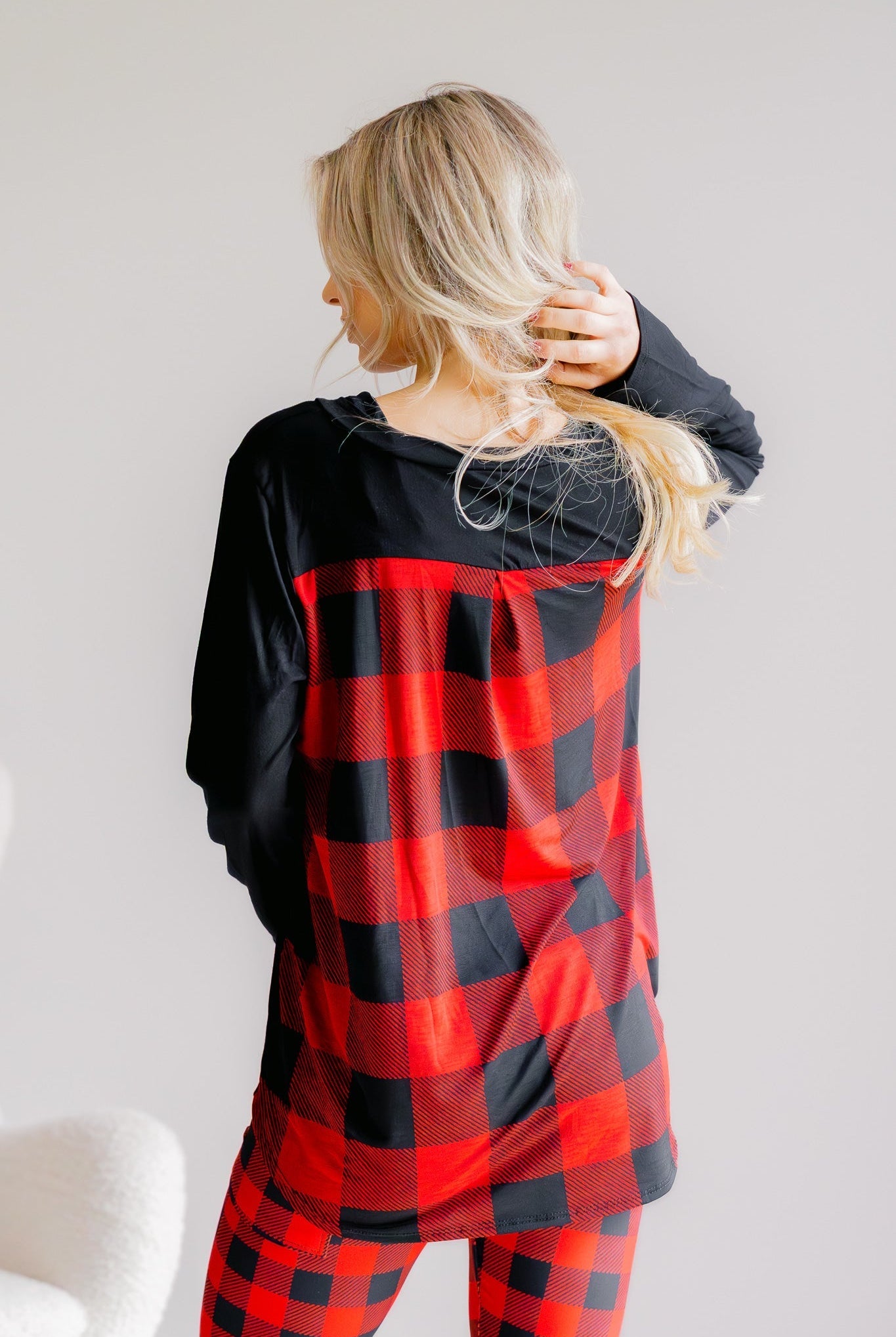 Crimson Cabin Plaid V-Neck