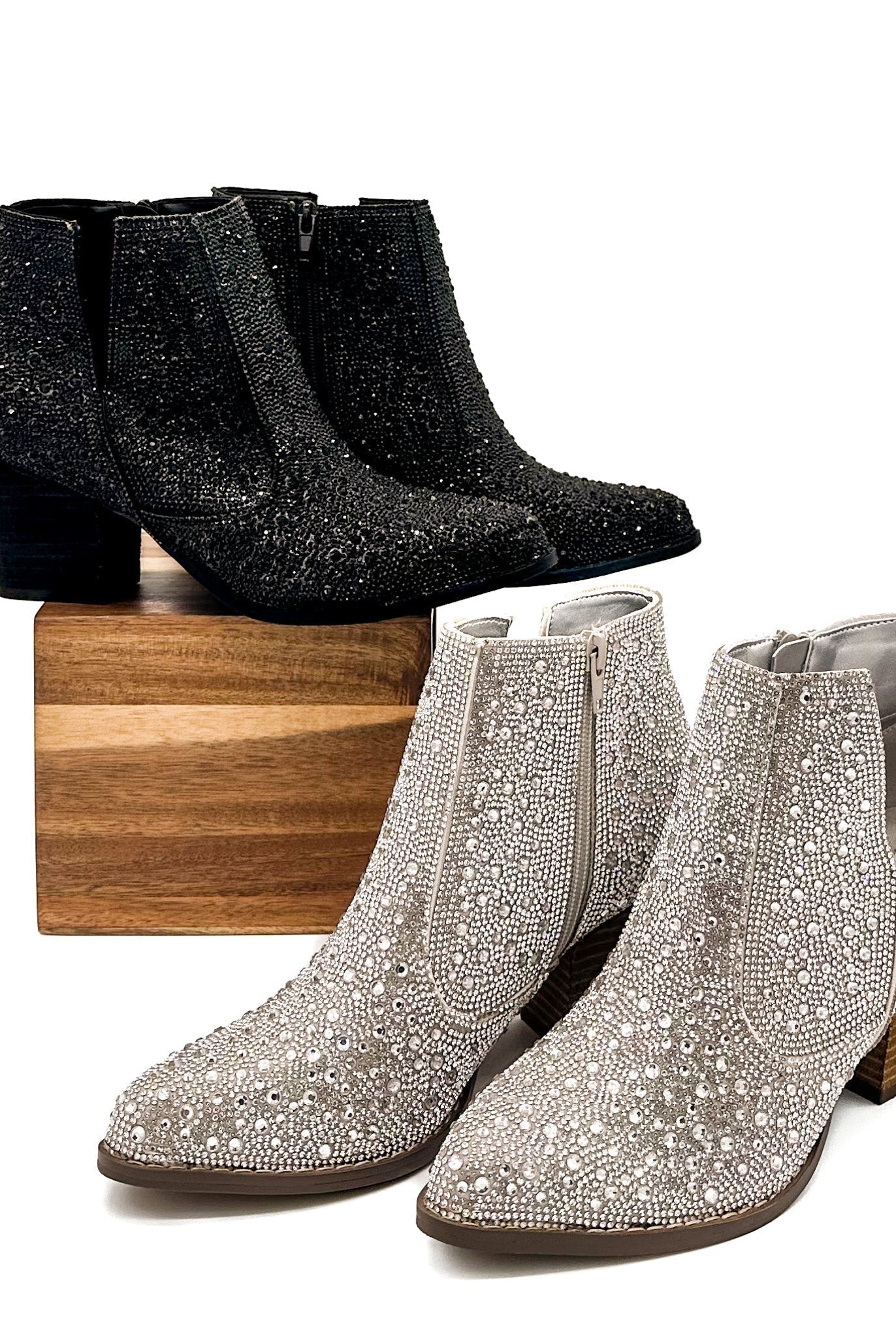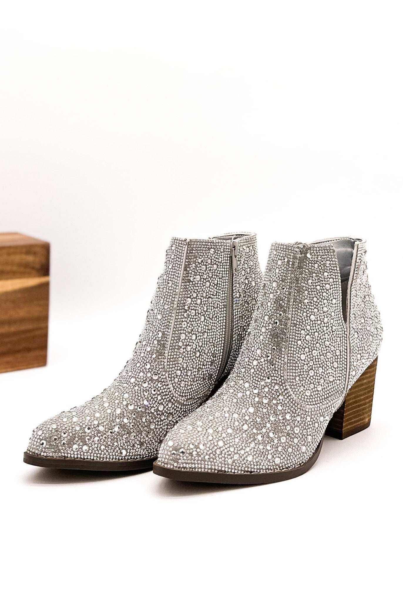 Shine Star Rhinestone Bootie in Silver by Naughty Monkey