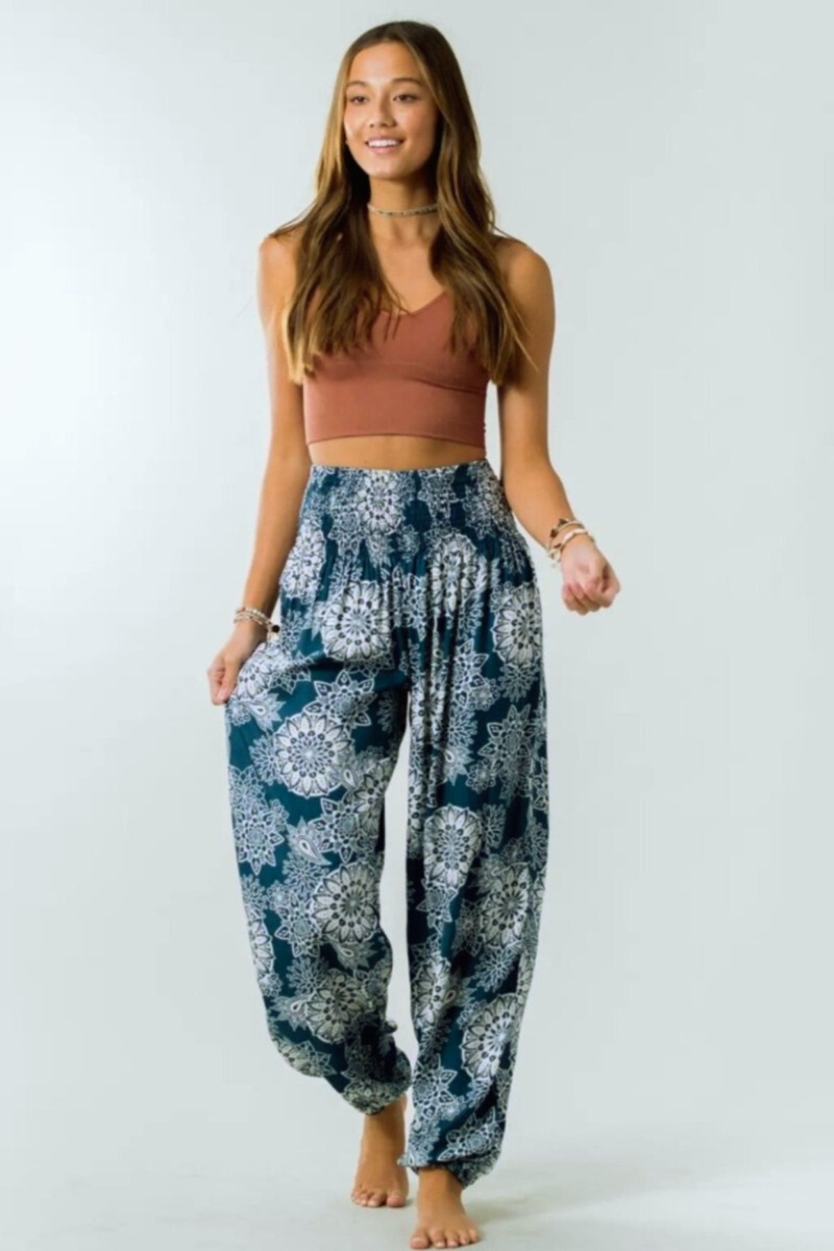 Relax in style in our cute, Lotus & Luna comfy boho mandala yoga pants! Wear them to yoga class, the beach, or girl's night in! Pair them with a cropped tank or tee for maximum style and comfort. Incredibly soft and lightweight, an elastic waist and cinched leg are perfect for relaxation and movement.