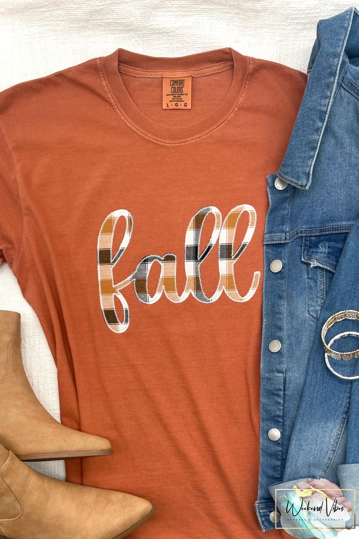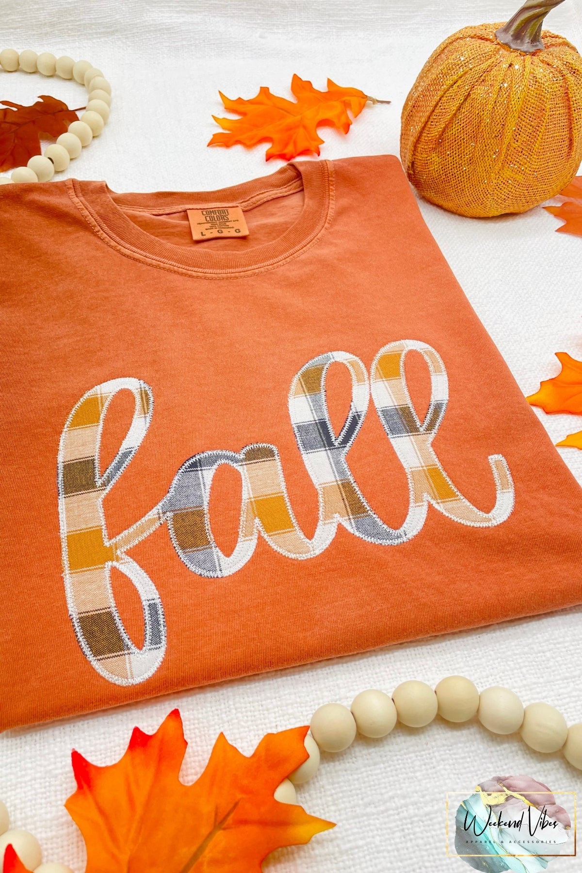 Fall Comfort Colors T-shirt, Fall Applique T-shirt, Autumn Colors Tee, Fall Vibes Pumpkin Patch Shirt, Fall Plaid Shirt, Thanksgiving Tee