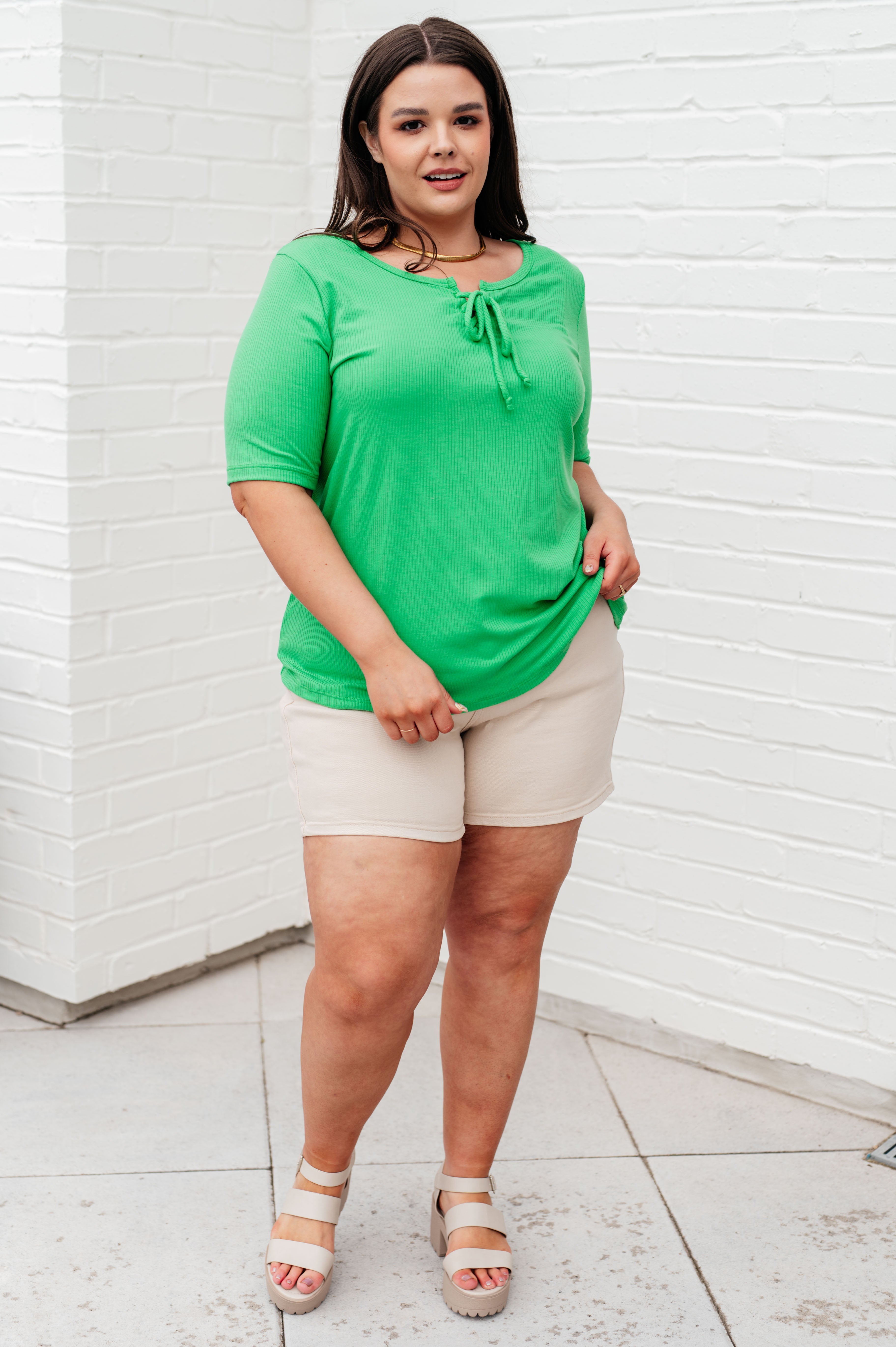 Get ready to fill your heart with love and style! This scoop neck top features lightweight jersey fabric and a ribbed design for comfort and a flattering fit. The U-neckline adds a touch of sophistication, while the functional front laced tie adds a playful twist.