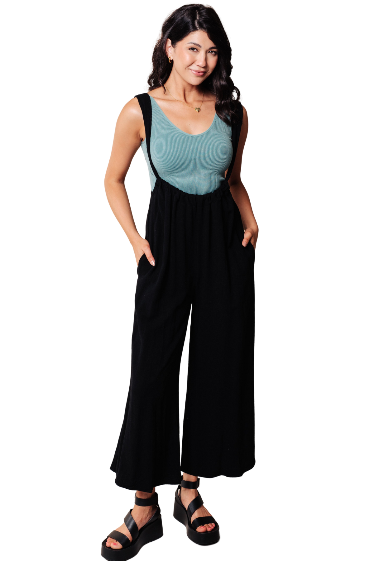 Discover the effortless elegance and comfort of the Something in the Way She Moves Jumper in Black. Made with lightweight, woven linen, its wide leg and relaxed fit provide a perfect blend of style and ease. With drawstring shoulder straps, this black jumper will effortlessly elevate your wardrobe.